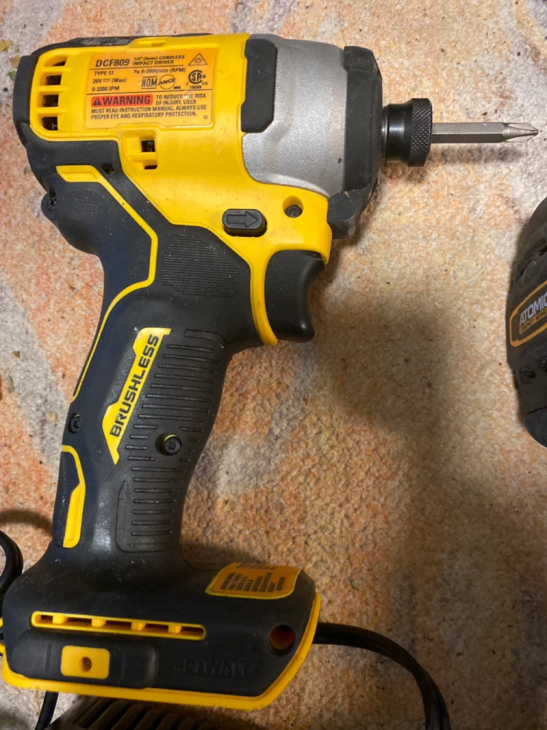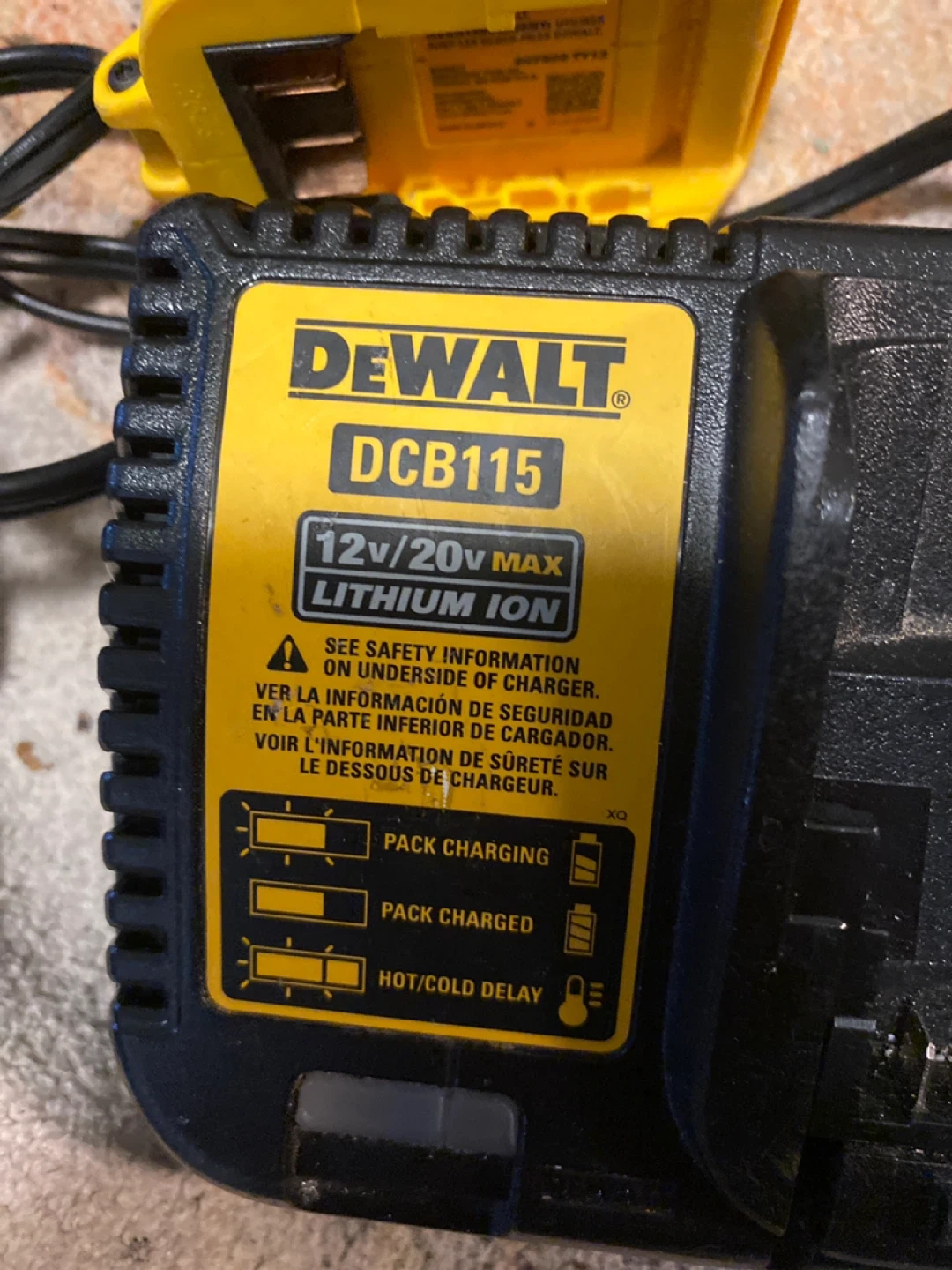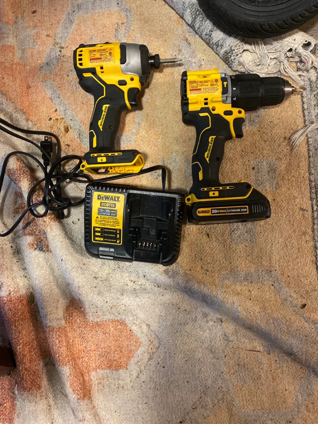 DeWalt 20V MAX cordless drill and impact driver set. Includes DCB115 charger and one 20V MAX lithium-ion batteries. Great for DIY projects or professional use!