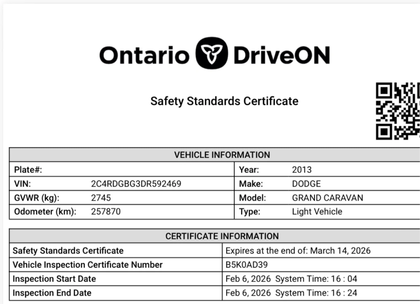 Safetied & Certified on 06/02/26 Valid for