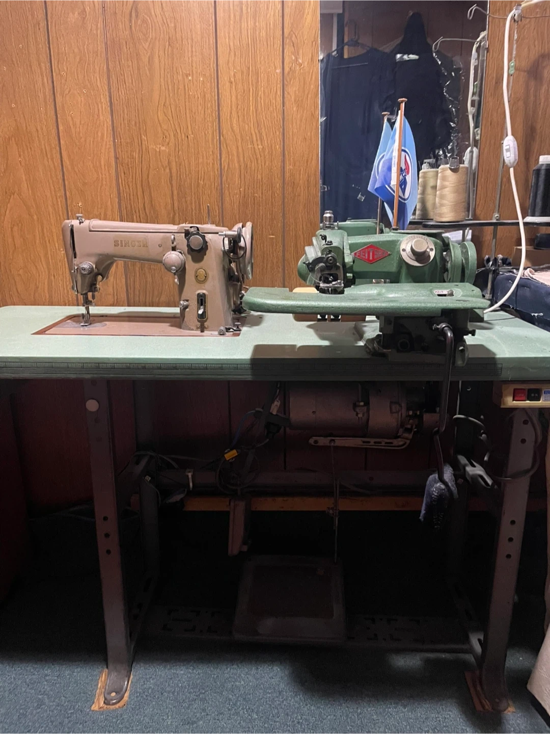 Vintage Singer sewing machines they are reliable piece of equipment for any sewing project. The set includes the machine, table, and various accessories for immediate use. This machine is perfect for tailoring and upholstery work.