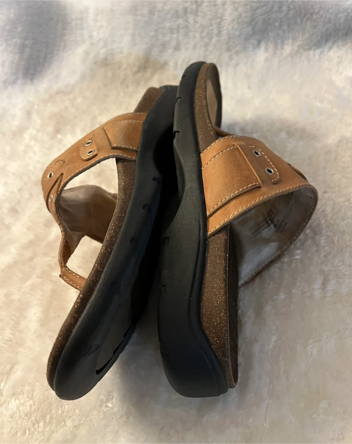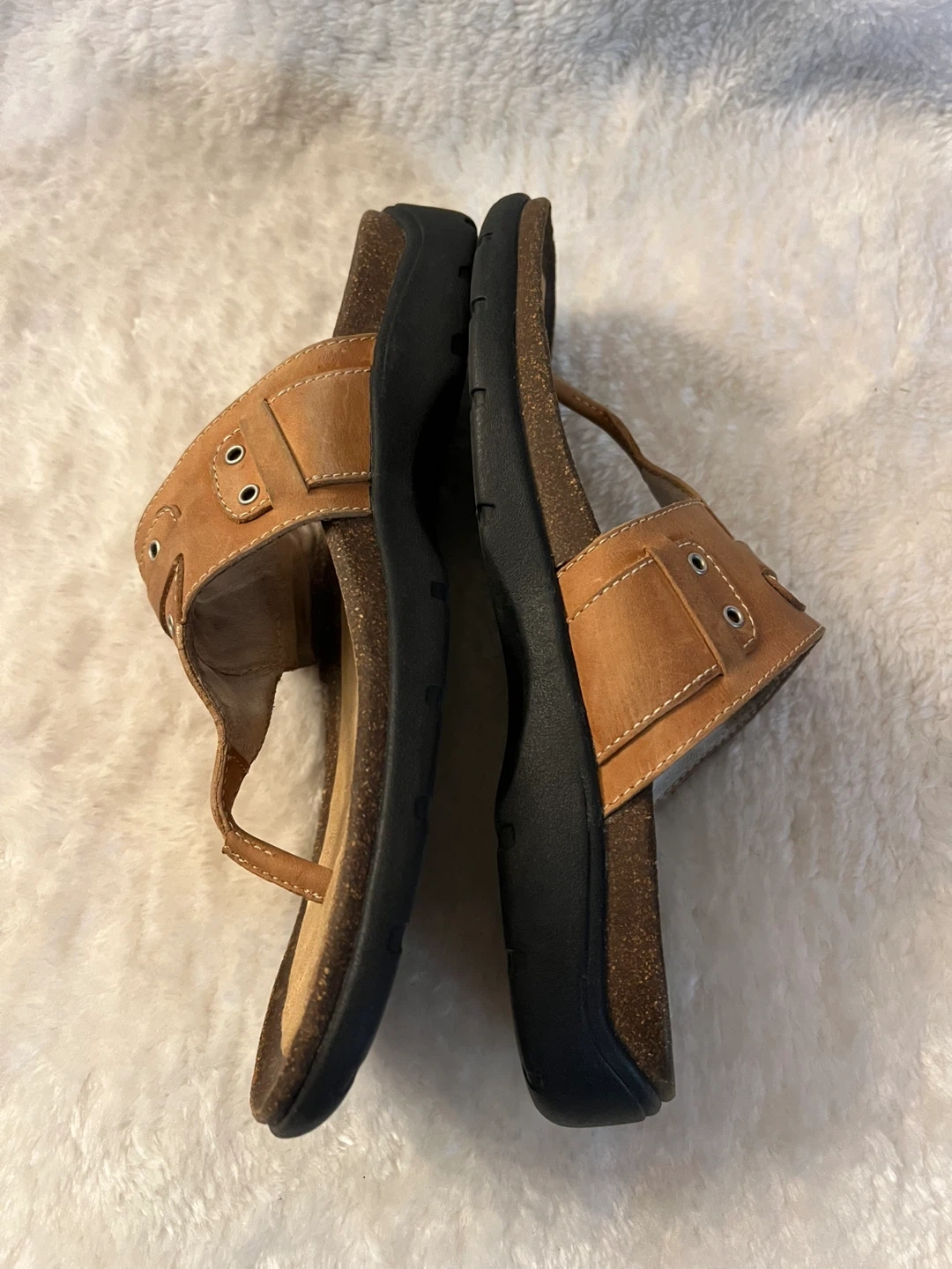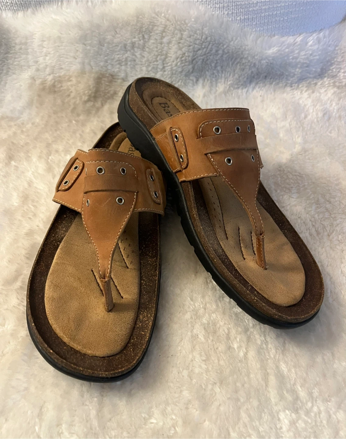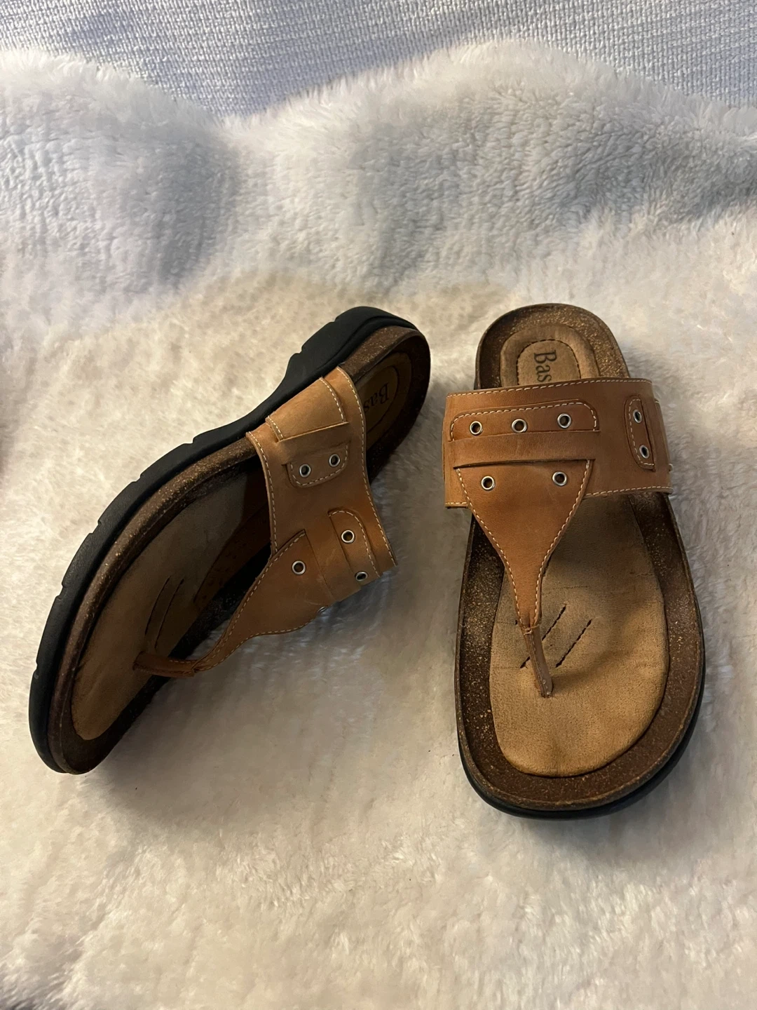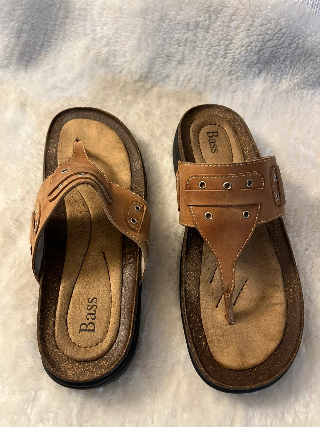 Bass Women's Tan Leather Thong Sandals Size 7.5