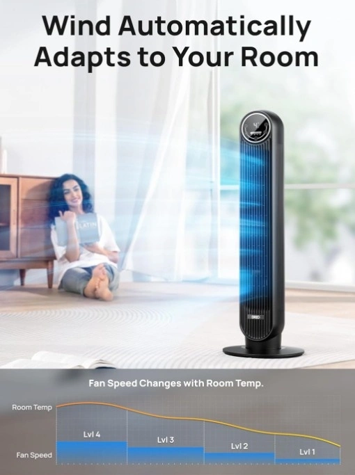 Dreo Tower Fan - Quiet, 4 Speeds, LED, Timer