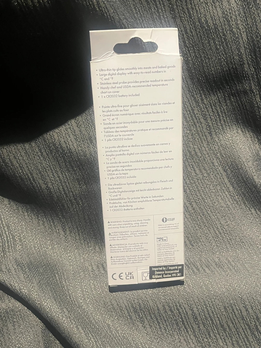 This OXO SoftWorks digital instant read thermometer offers ultra-thin flip probes that smoothly glide into meats and baked goods. It has a large digital display with easy-to-read numbers. The stainless steel probe provides precise readout in seconds.