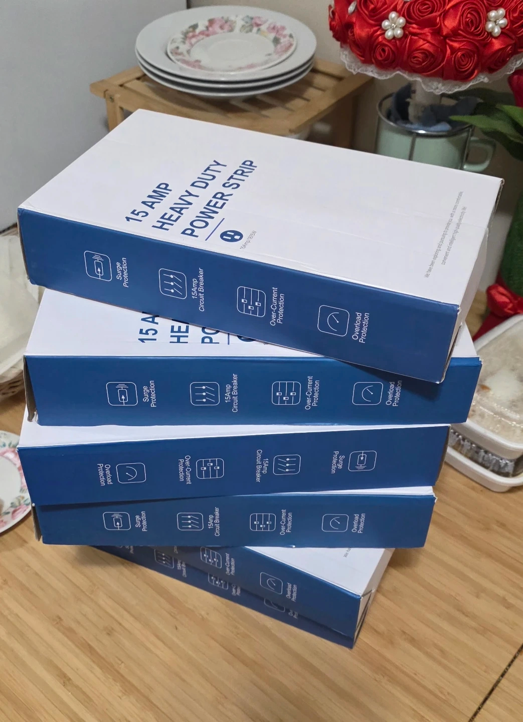 This is a brand new heavy duty metal power strip with surge protector featuring 8 grounded outlets and a 6-foot cord, perfect for home or office use. It offers a 15 Amp circuit breaker for overload protection.