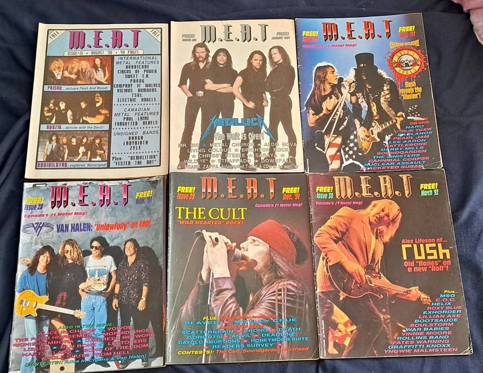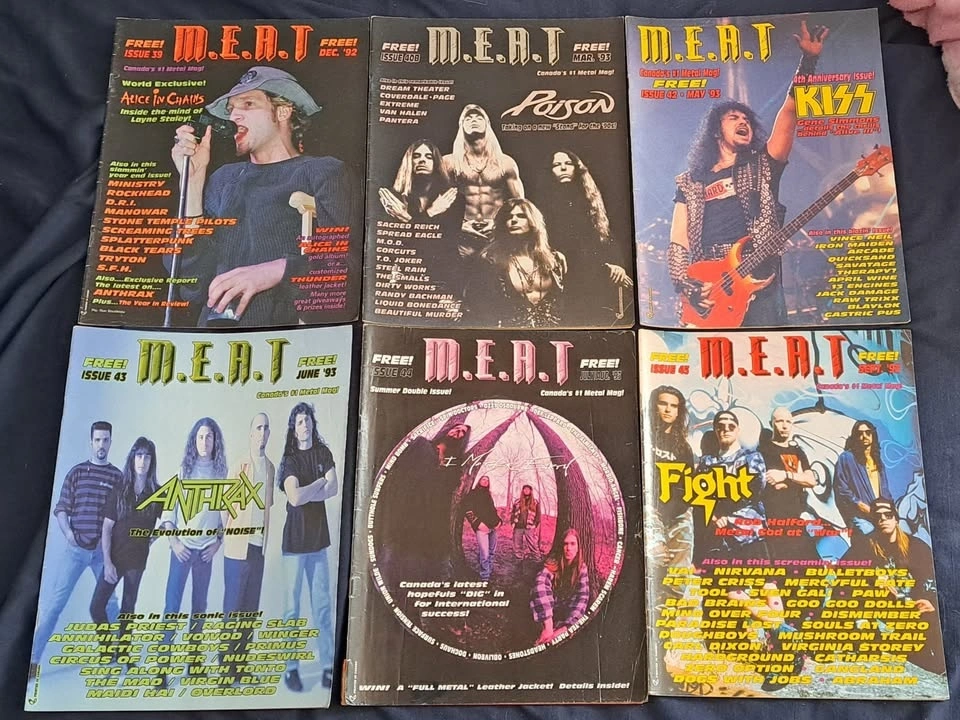 Very rare collection of M.E.A.T. Magazine from the 90's. All in good shape apart from some minor wear. You won't find a grouping of this many issues in one listing, so don't miss out if you're a metal/hard rock magazine collector. Willing to sell some issues separately if you're a serious buyer. Please contact for that and/or to make an offer on the collection.