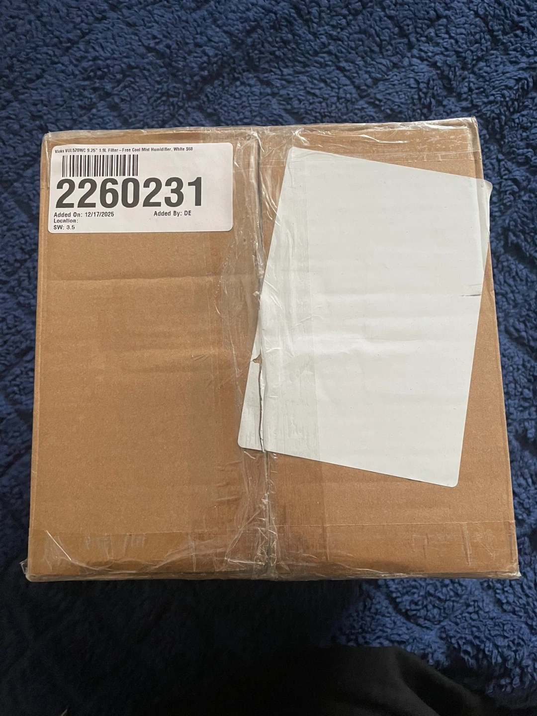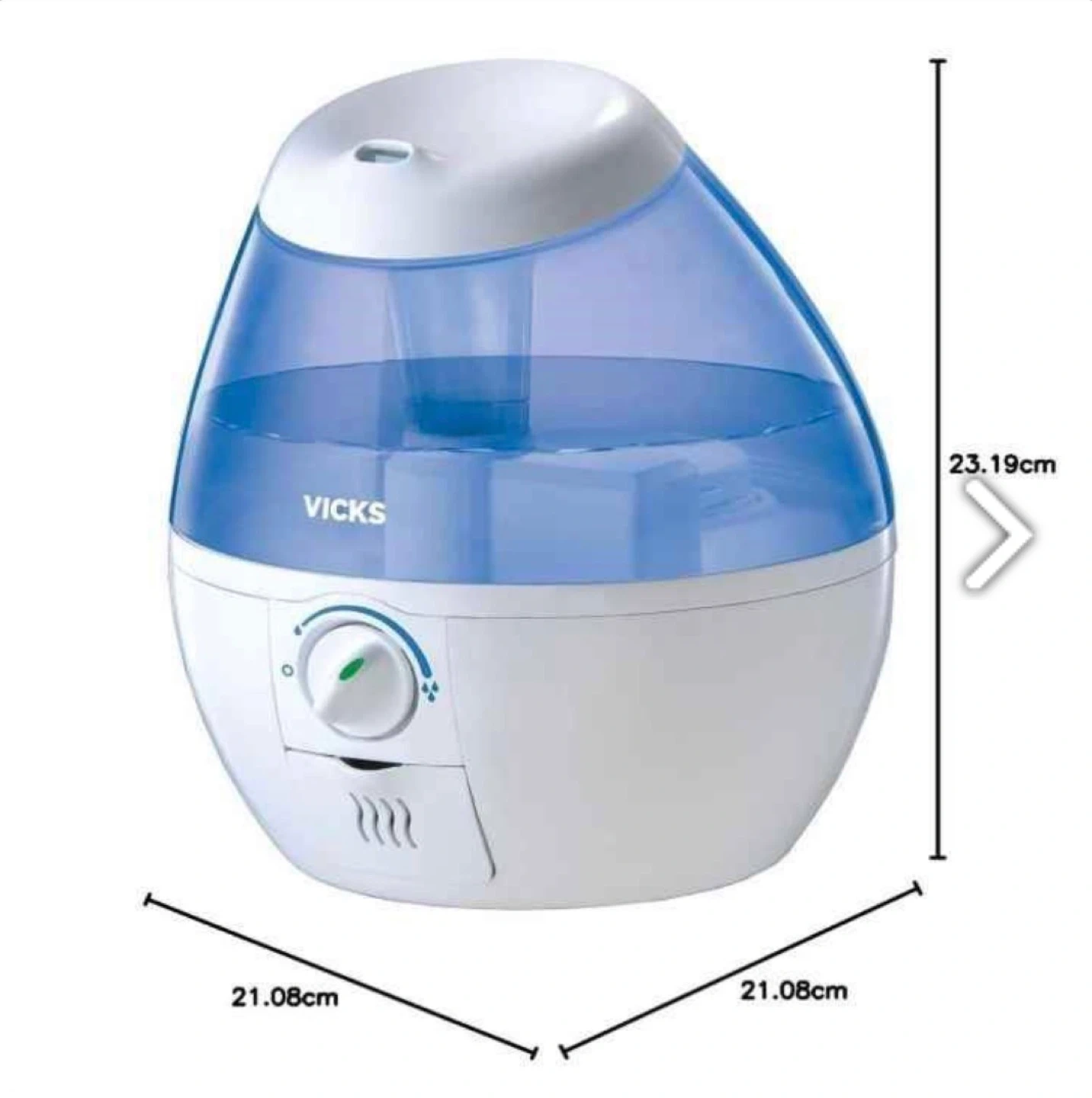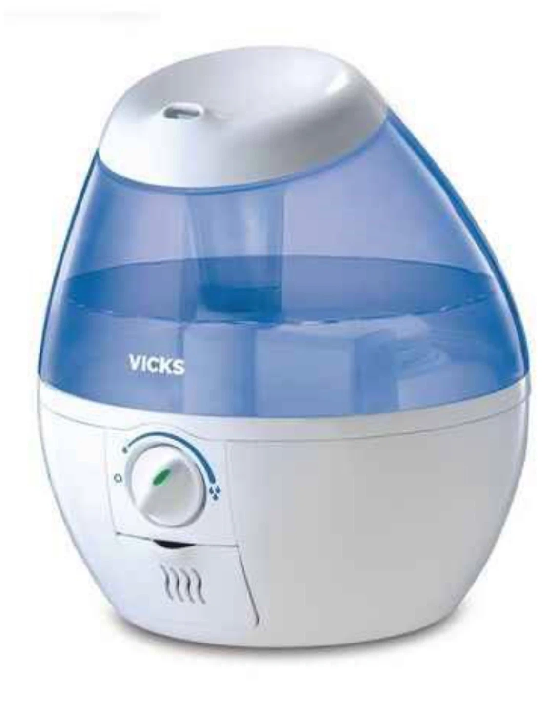 Vicks VapoMist VUL520W cool mist humidifier. White and blue colour. It has a 1.9L tank capacity filter free.