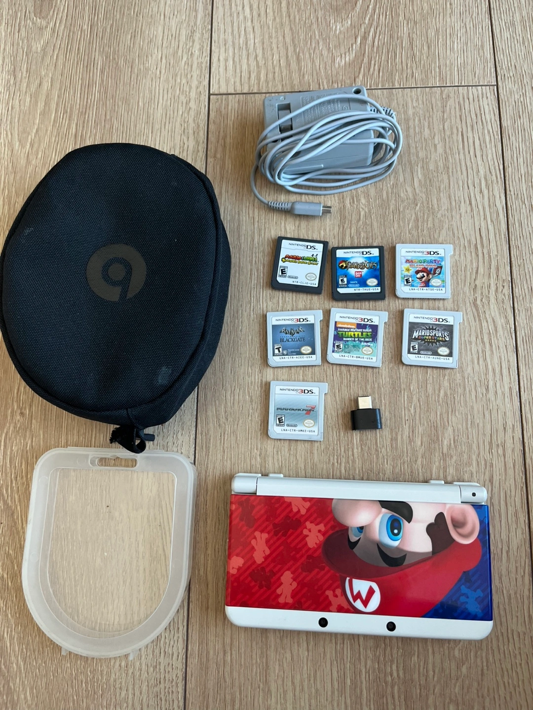 Selling a Nintendo 3DS Mario Edition console with a bunch of games and accessories! It comes with a charger, a Beats carrying case, and a clear case. There are also several game cartridges included:
