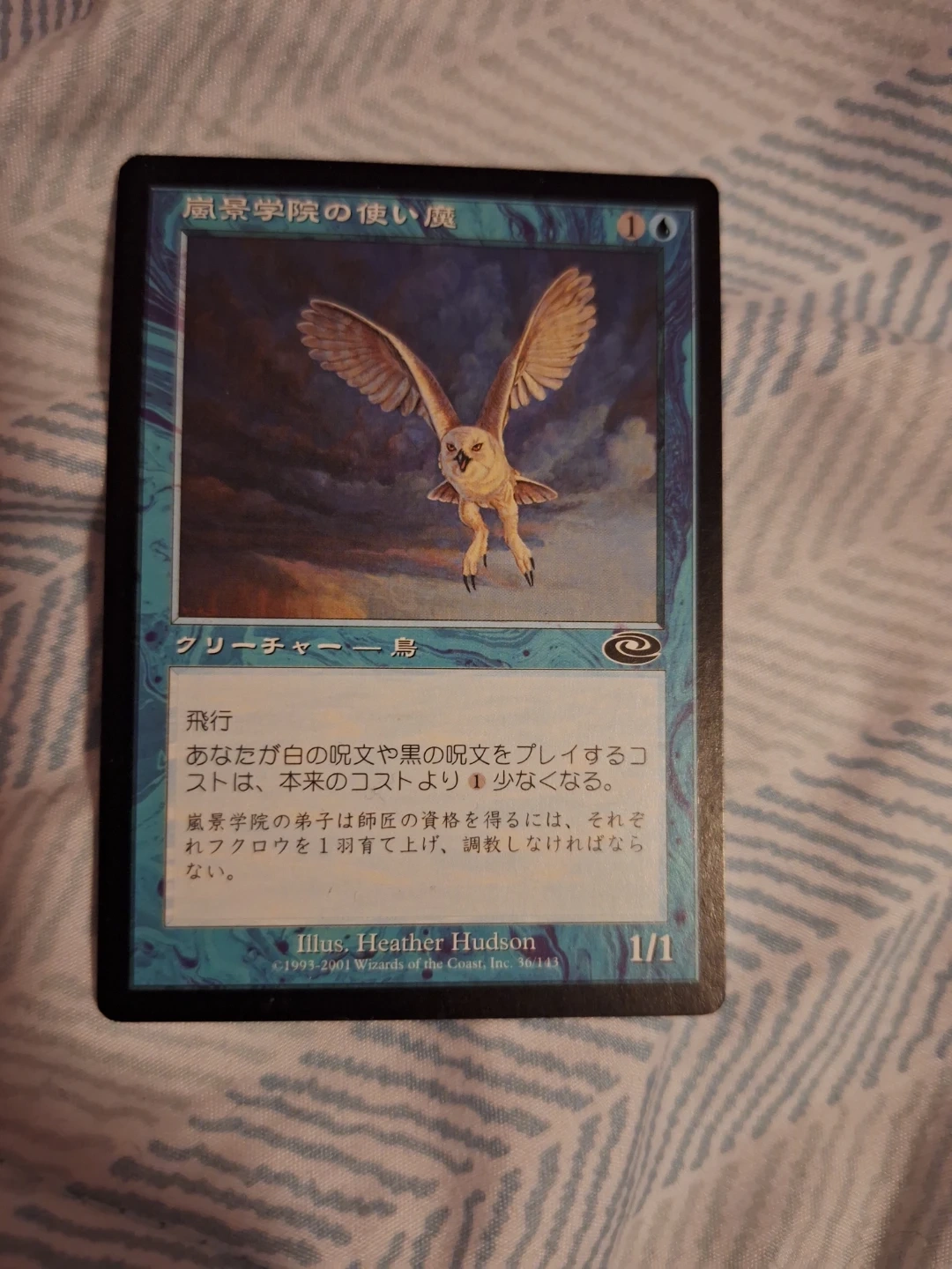 This is a Magic: The Gathering card from the Tempest set, released in 2001. It's a creature card with a flying ability. The card's text indicates it reduces the cost of playing white or black spells by one. The illustration is by Heather Hudson.