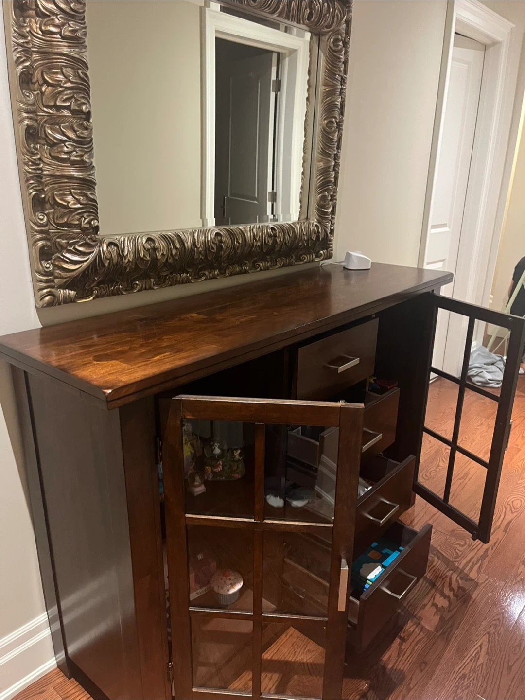 Dark Wood Sideboard with Mirror