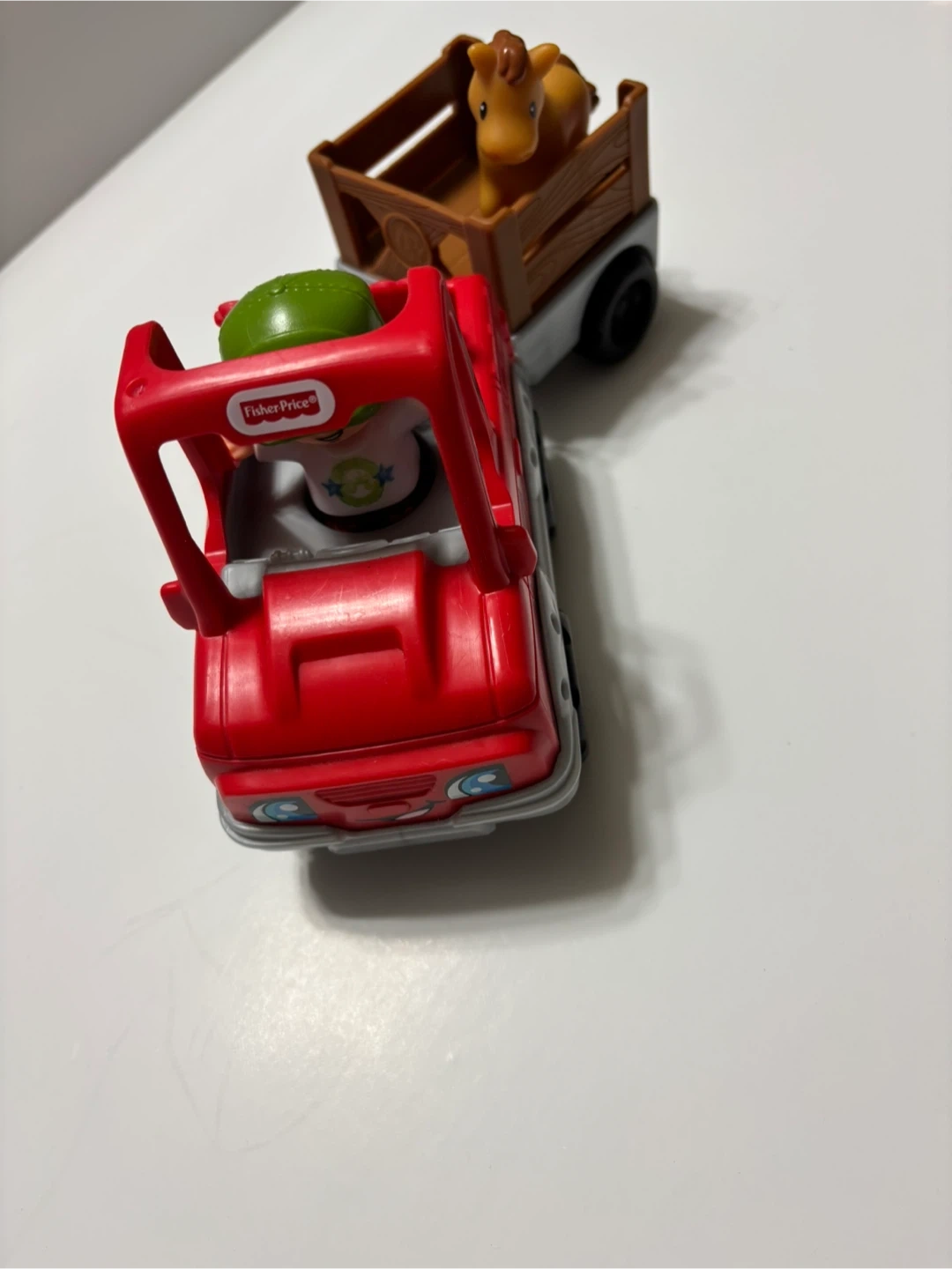 Here's a cute Fisher-Price Little People red truck with a horse trailer! It's in great shape and ready for a new adventure. Perfect for little hands and imaginative play