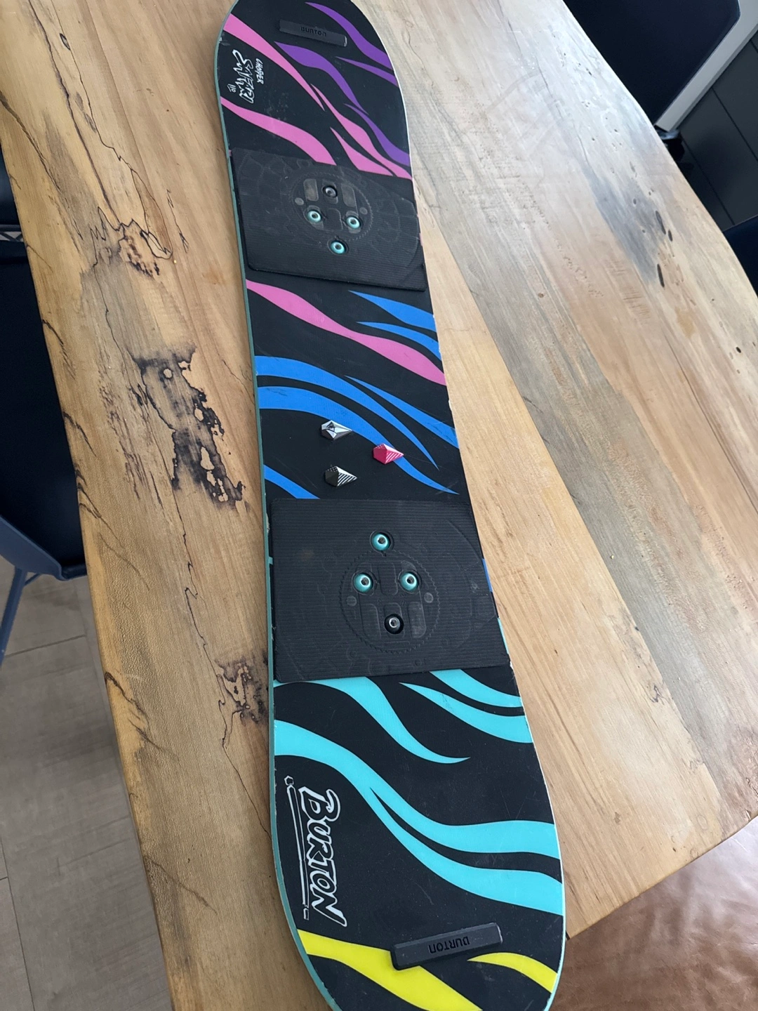 Burton Chopper Safari 110 snowboard. Good condition, minor scratches on top and bottom. Volcom stompers included. Used for only 1 season.