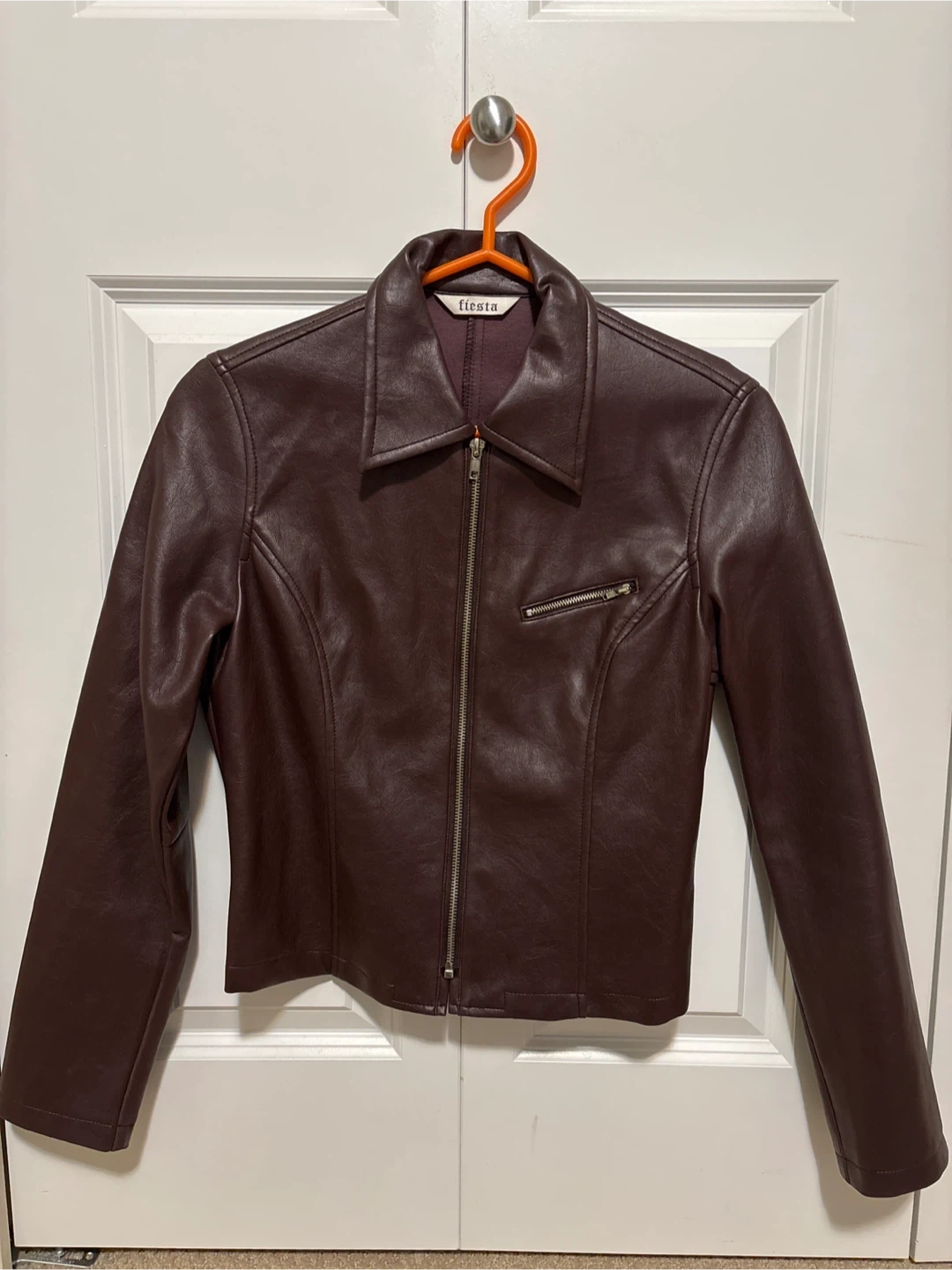 Buy & SellFiesta Faux Leather Jacket - Size MFiesta Faux Leather Jacket - Size M$18This faux leather jacket is a size medium(Japanese). It's a rich, dark brown colour. It has a zipper closure and a zippered pocket on the chest.ConditionGoodSizeM (Japan)WHERE TO MEET7 elevenView MapSELLERverifiedSakiCascade Heights18512 reviews0 chats·0 favorites·9 viewsSEND CHAT TO SELLERHi Saki! I’m interested in your listing.Hi Saki! I’m interested in your listing.Get the Karrot app to chatSign In to chat
