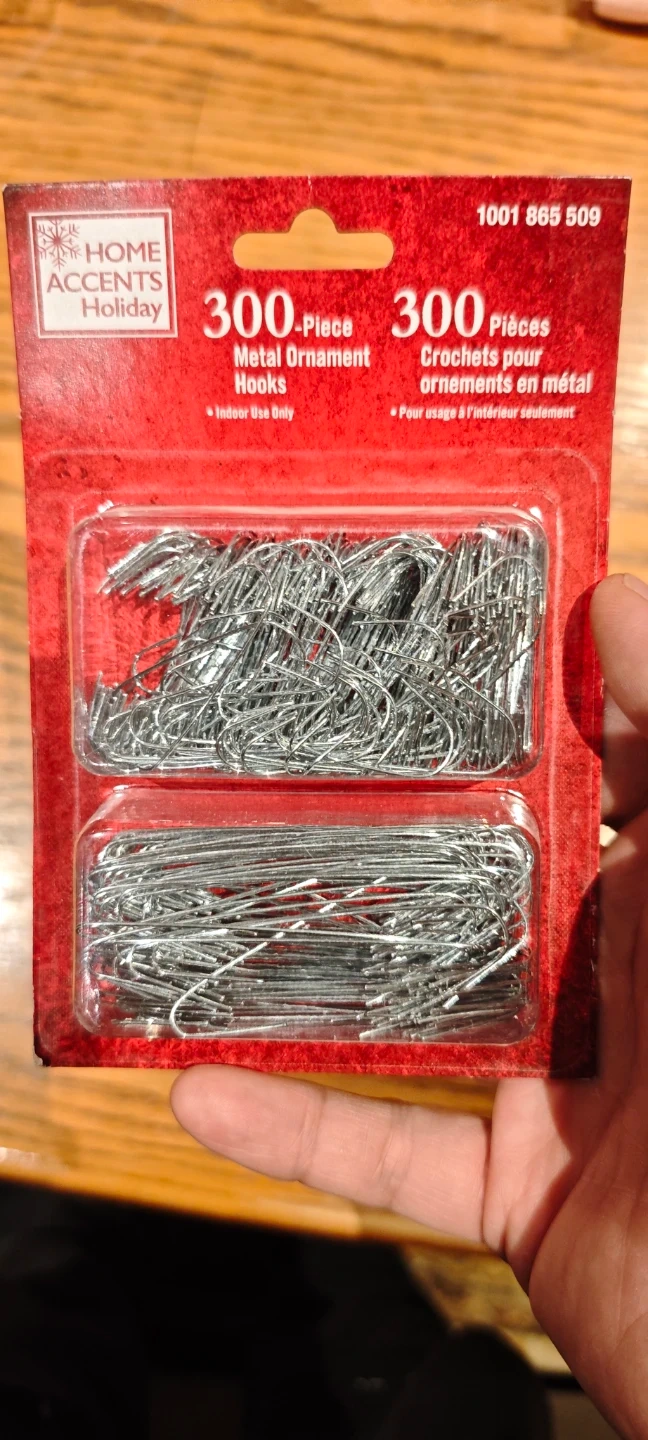This package contains 300 metal ornament hooks. They are intended for indoor use only. These hooks are suitable for hanging Christmas ornaments or other small decorative items.