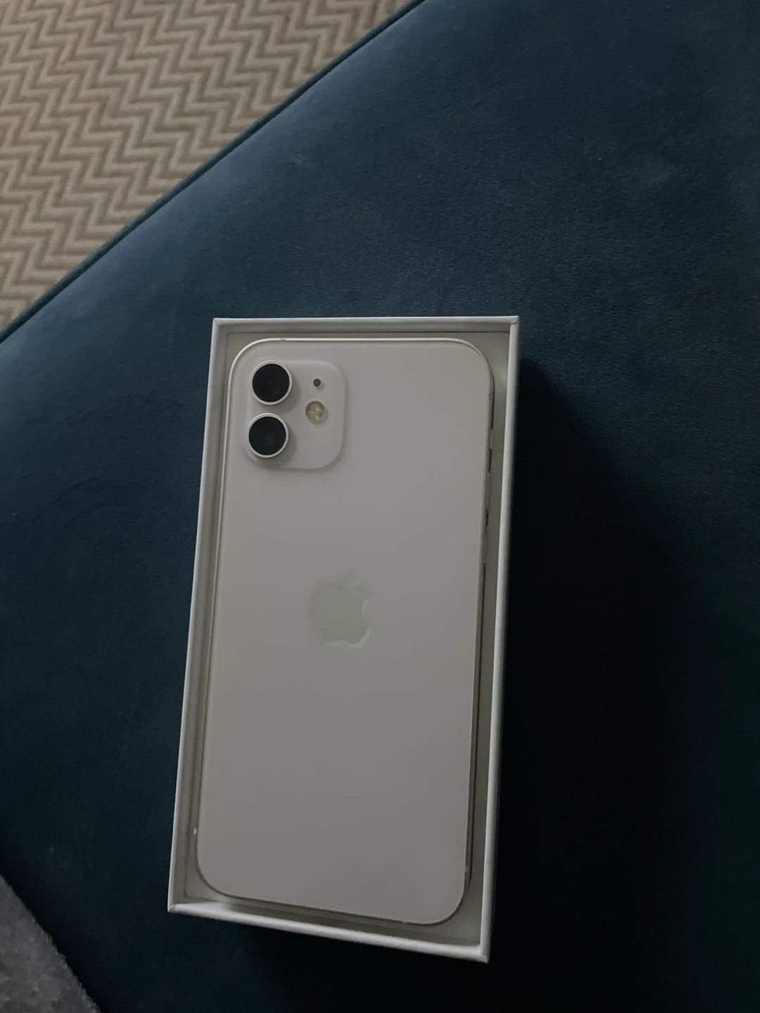 Selling an Apple iPhone 12 Mini in white. It's the compact model, perfect for one-handed use. This phone is in good condition and comes with its original box.