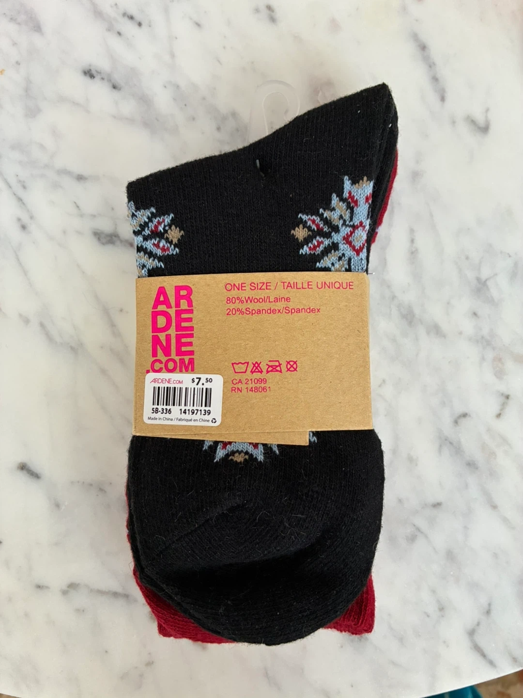 NEW crew socks come in a 2-pair pack, featuring a wool blend for warmth. They're one size fits most. Made with 80% wool and 20% spandex for comfort and stretch.