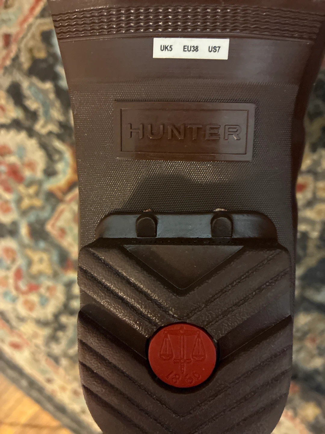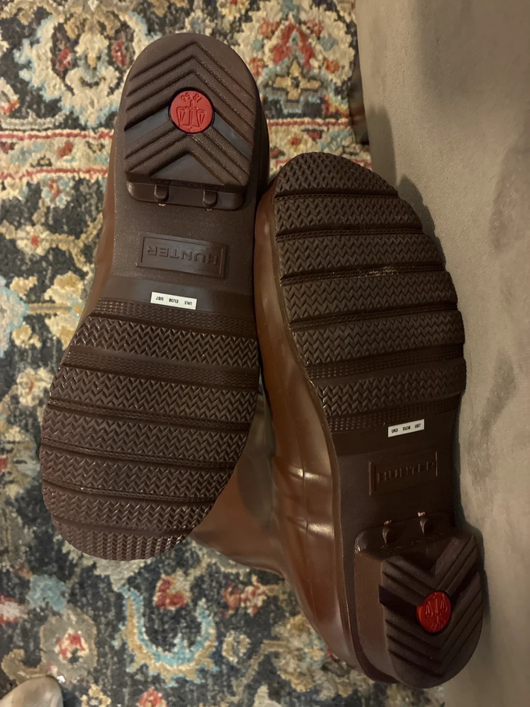 Selling a pair of Hunter rain boots in brown! They are a US size 7 and EU size 38. Perfect for rainy days! Barely used!!!