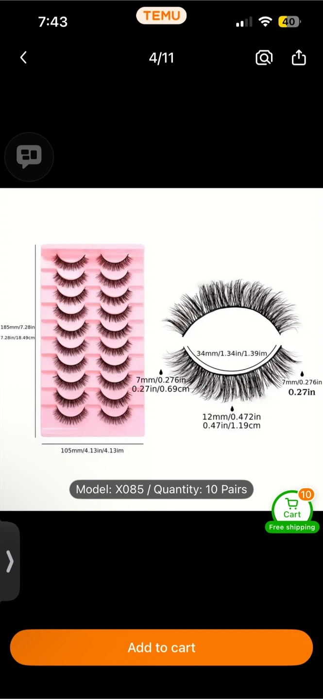 Get a stunning look with these false eyelashes. This pack includes 10 pairs for a fantastic value. The lashes are designed for a natural yet voluminous appearance, perfect for everyday wear or special occasions.