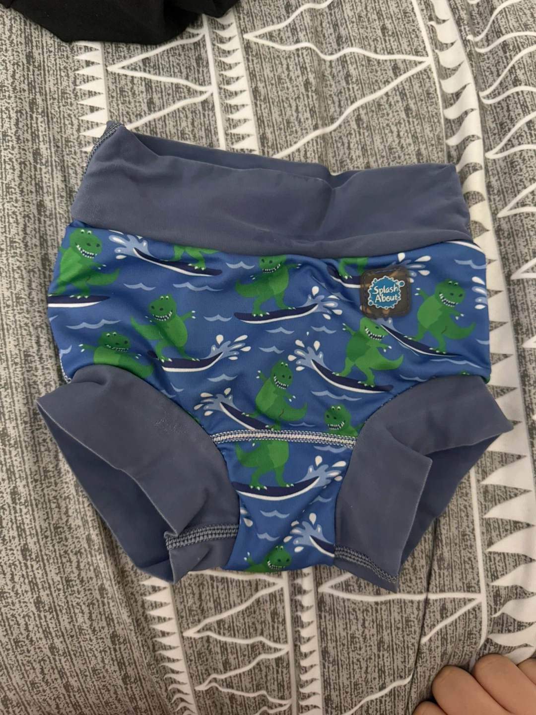 Splash About Happy Nappy swim diaper with a fun dinosaur print! Perfect for keeping your little one secure and comfortable in the water. Great condition and ready for more splashing!