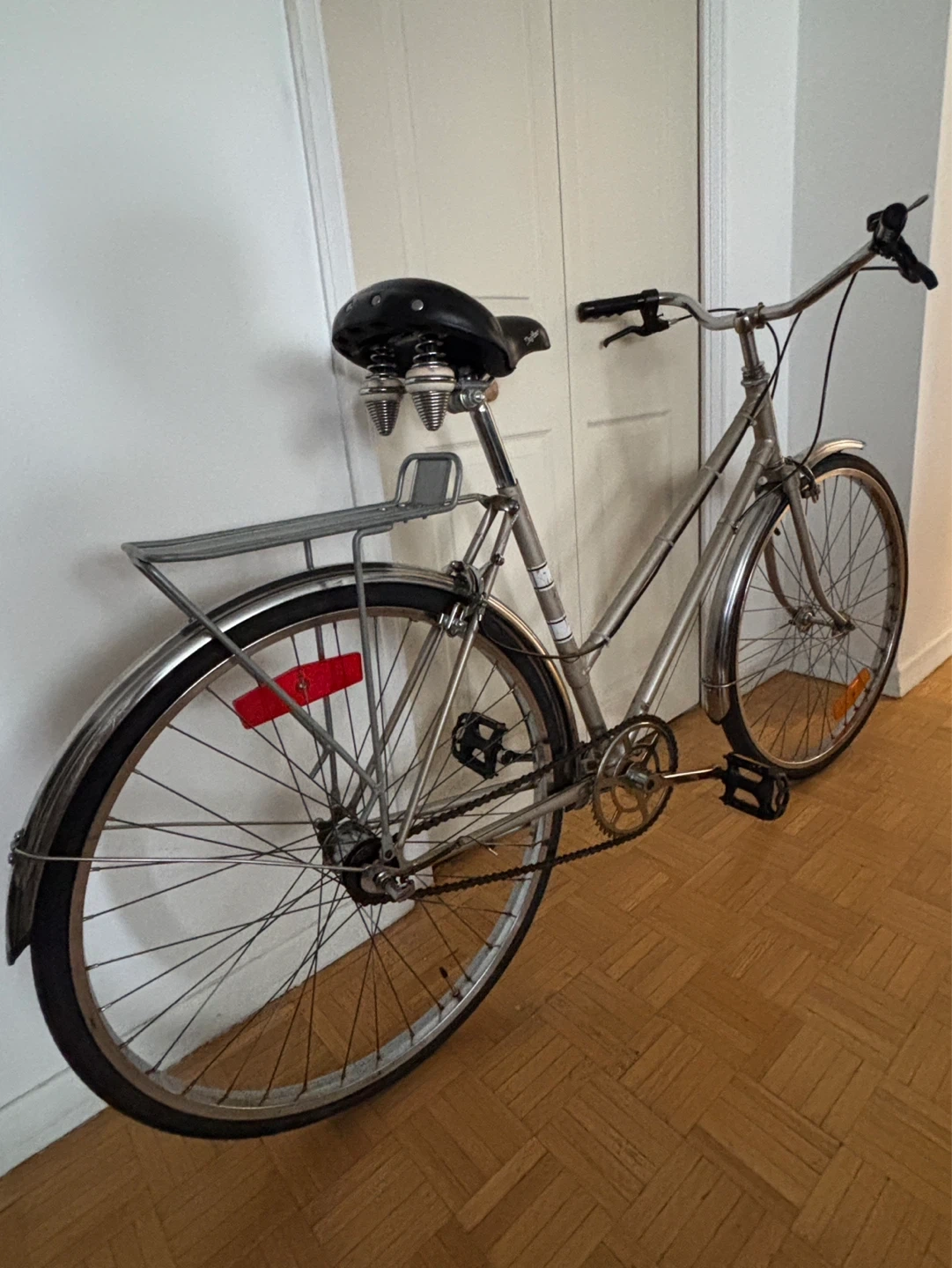 Features fenders and a rear rack.