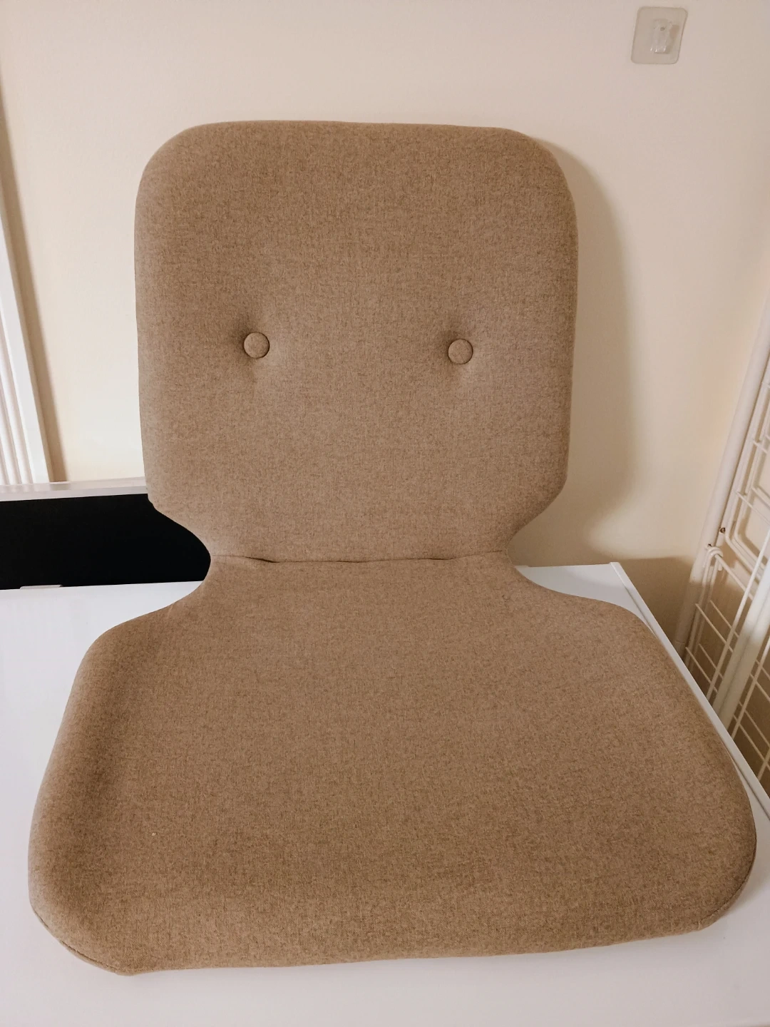 This is a new tufted upholstered chair back and seat cushion in a neutral beige fabric.