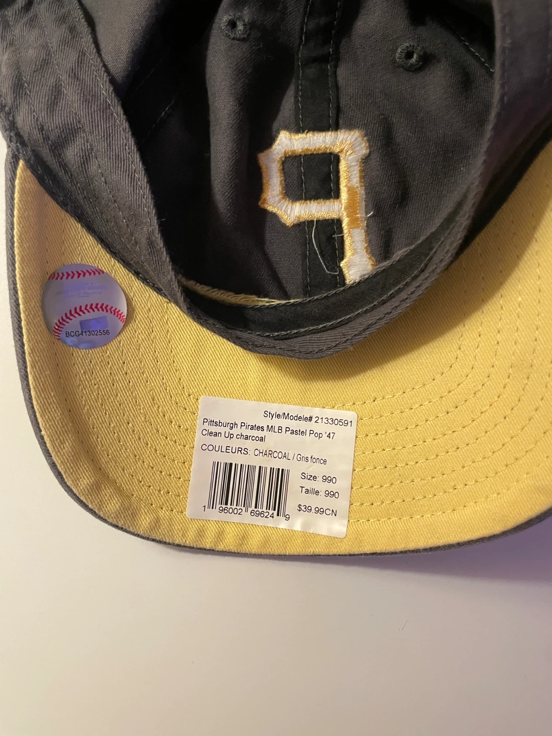 This is a 47 Brand Pittsburgh Pirates hat in charcoal. It's the MLB Pastel Pop '47 Clean Up style.