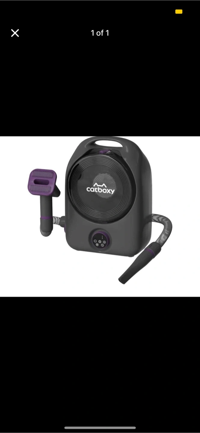 This is a Catboxy grooming vacuum. It comes with a grooming brush attachment. Multiple suction settings available.
