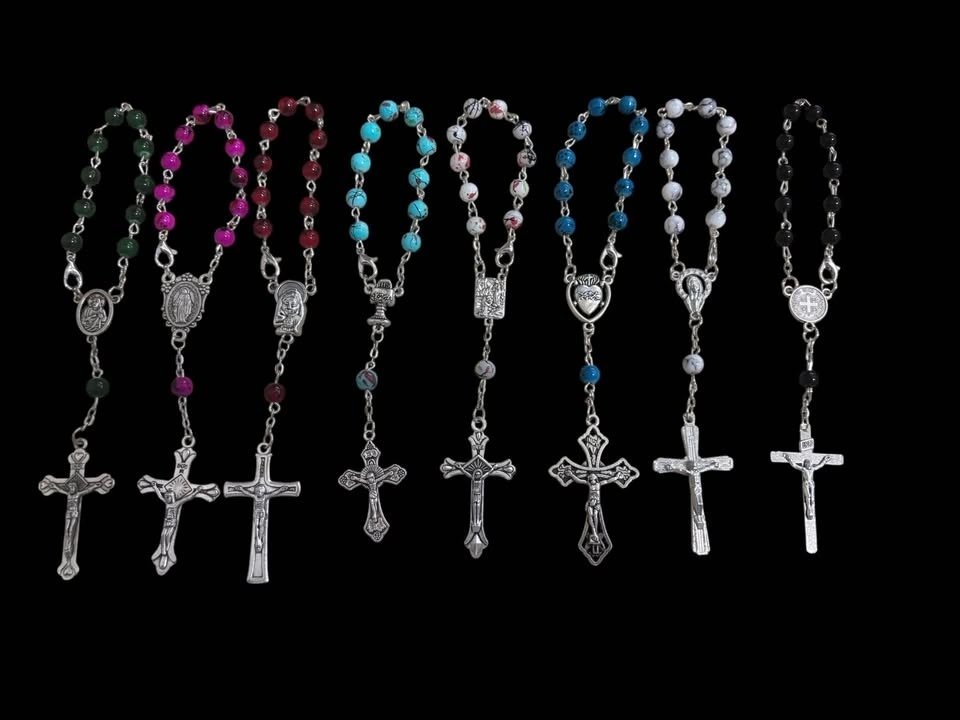 Each rosary is finished with a petite crucifix and a delicate medal. Its compact size rests easily in the hand, pocket, or purse—perfect for prayer on the go, thoughtful gifting, or keeping close as a small reminder of faith.
