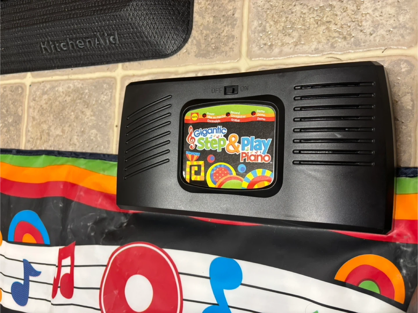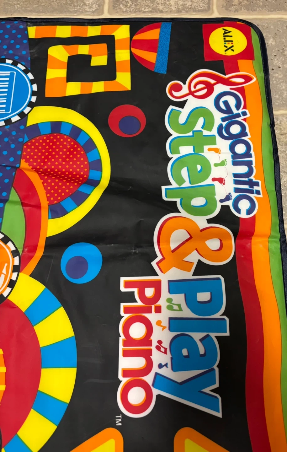 Get this Gigantic Step & Play Piano mat for hours of musical fun! It's a large interactive play mat with a piano keyboard that lights up and plays sounds when stepped on. The control box allows for different modes and sound options.