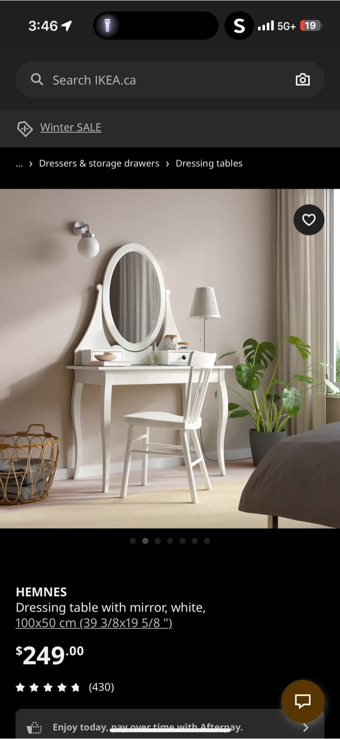 Selling a lovely white Hemnes dressing table from IKEA! It comes with a mirror and has a classic, elegant look. The dimensions are 100x50 cm (39 3/8x19 5/8 "). Such a beautiful piece for any bedroom or dressing area!