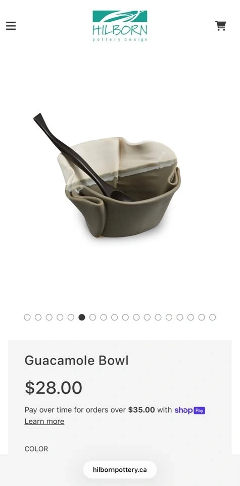 Hilborn Pottery Designs ceramic bowl and rosewood spoon, made in Cambridge, Ontario. Perfect for serving Mexican specialties. Oven, dishwasher, and microwave safe, as well as food and drink safe. Dimensions: 6 × 6 × 3.5 in.
