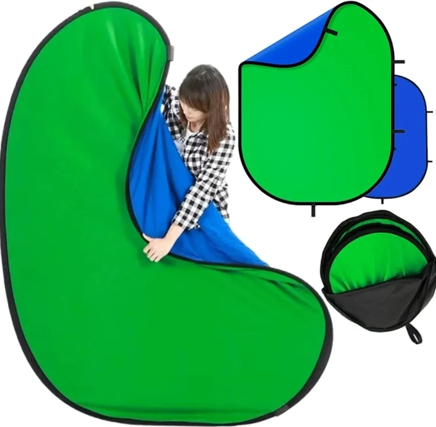 The collapsible & portable double sided green/blue screen is great for creating video content, streaming or any project needing a change in background. It can also be hung & folds easily. Made of quality fabric - no rips or marks.
