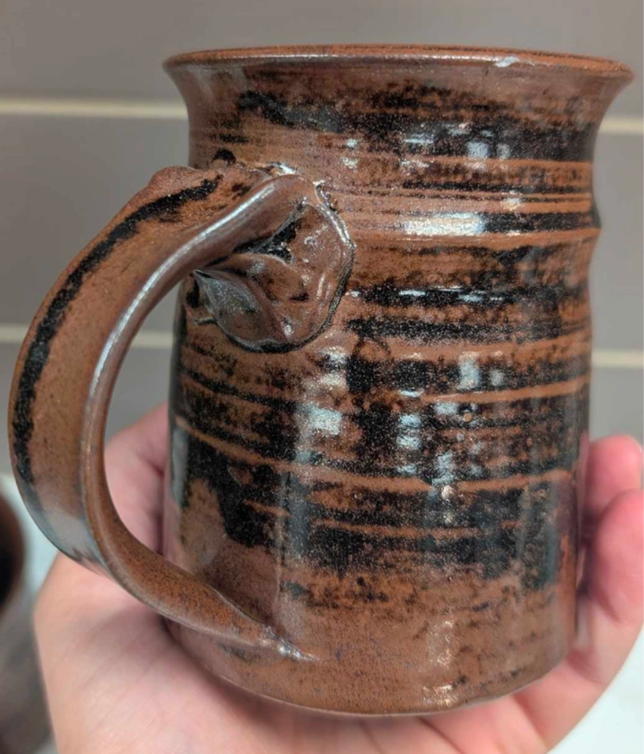 Selling a unique handmade Stoneware mug. It's a beautiful brown and black colour. Perfect for coffee, tea, or any beverage!