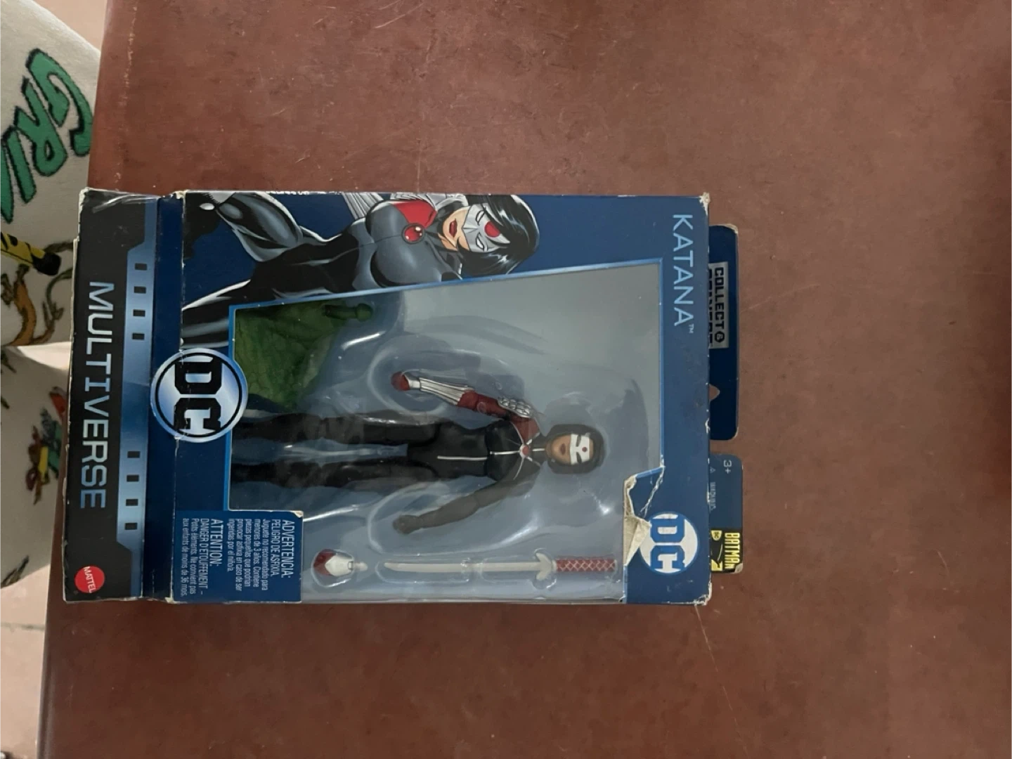 This is a DC Multiverse Katana action figure by Mattel. It comes in original packaging. This figure is suitable for collectors aged 3 and up. Includes accessories.