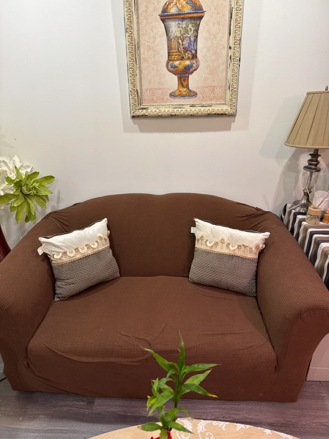 Love seat Brown Couch Cover with Textured Pattern