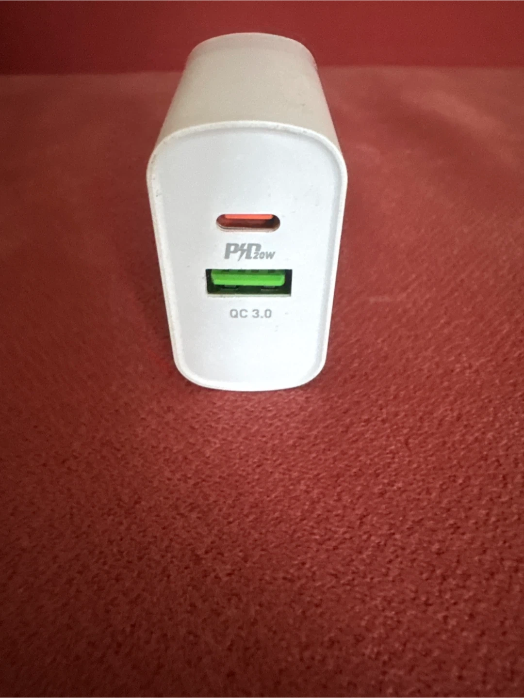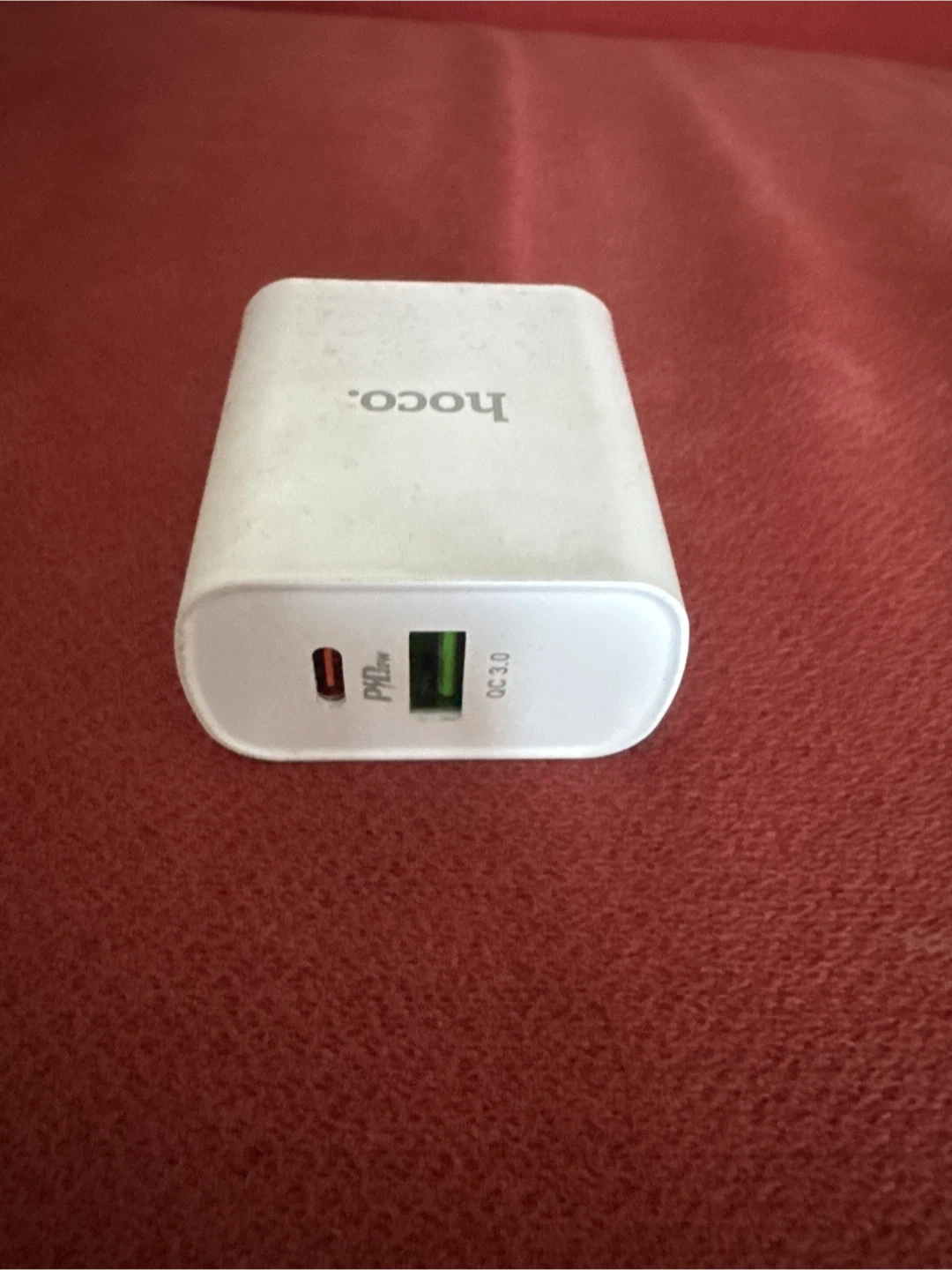 This is a HOCO fast charging wall adapter. It supports PD 20W and QC 3.0 charging speeds. It has one USB-C port and one USB-A port for charging multiple devices.