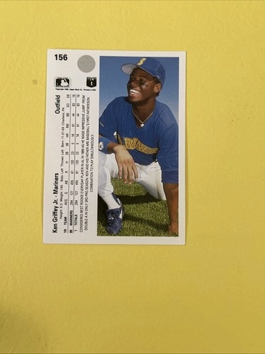 Capture a piece of baseball history with this Ken Griffey Jr. Card #156. This sports trading card features the iconic player who left an indelible mark on the game, making it a must-have for fans and collectors alike. It belongs to a highly sought-after set and is a great way to commemorate Griffey's remarkable career. Whether you're looking to expand your existing collection or starting a new one, this card is an excellent choice. It's a tribute to one of baseball's most exciting talents, and owning it means holding a piece of sports heritage in your hands. Add this card to your collection and celebrate the legacy of Ken Griffey Jr.