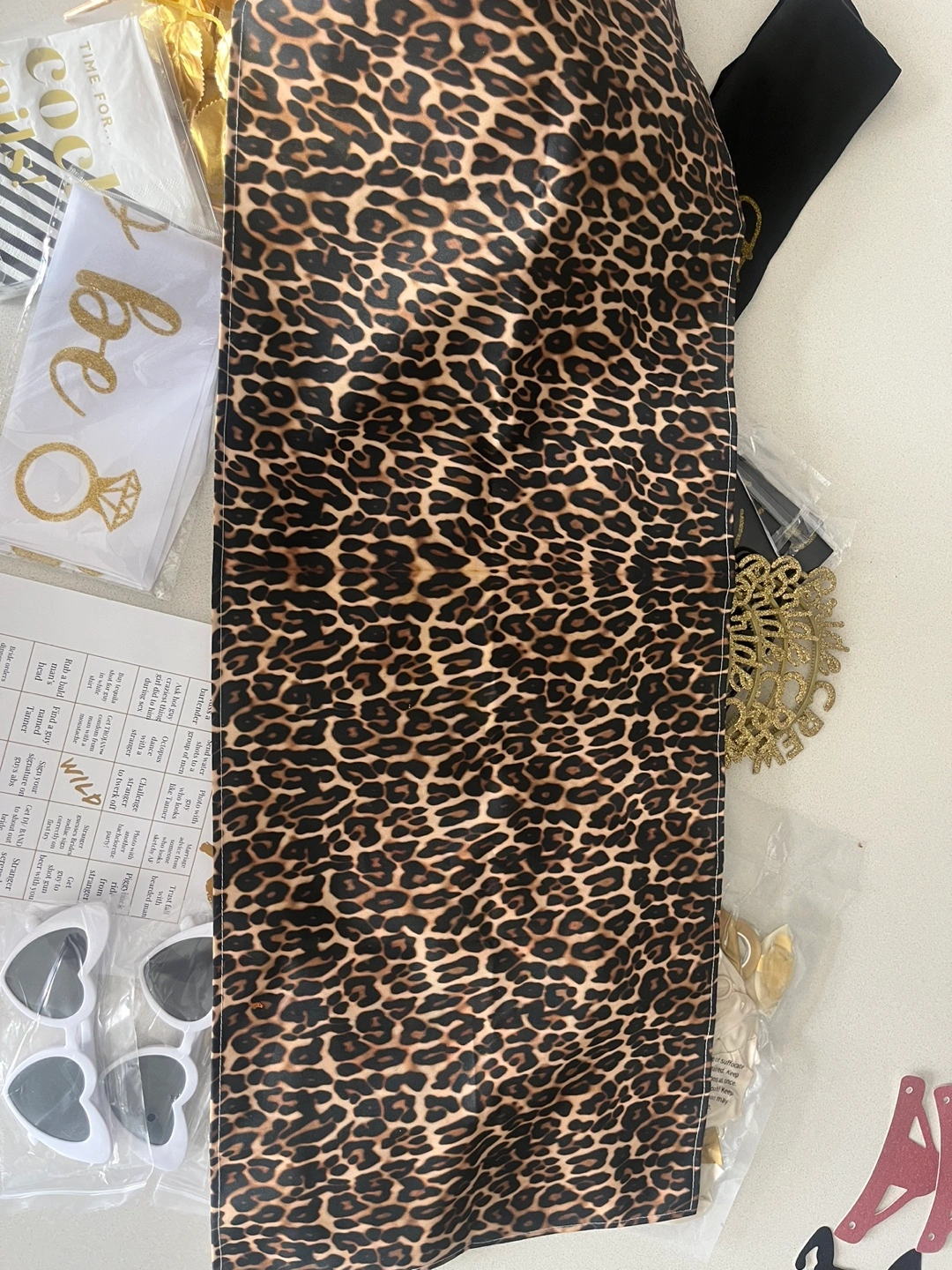 Fun leopard print table runner! Add a touch of wild elegance to your next event with this striking leopard print table runner. Perfect for a bachelorette party/ bridal shower.