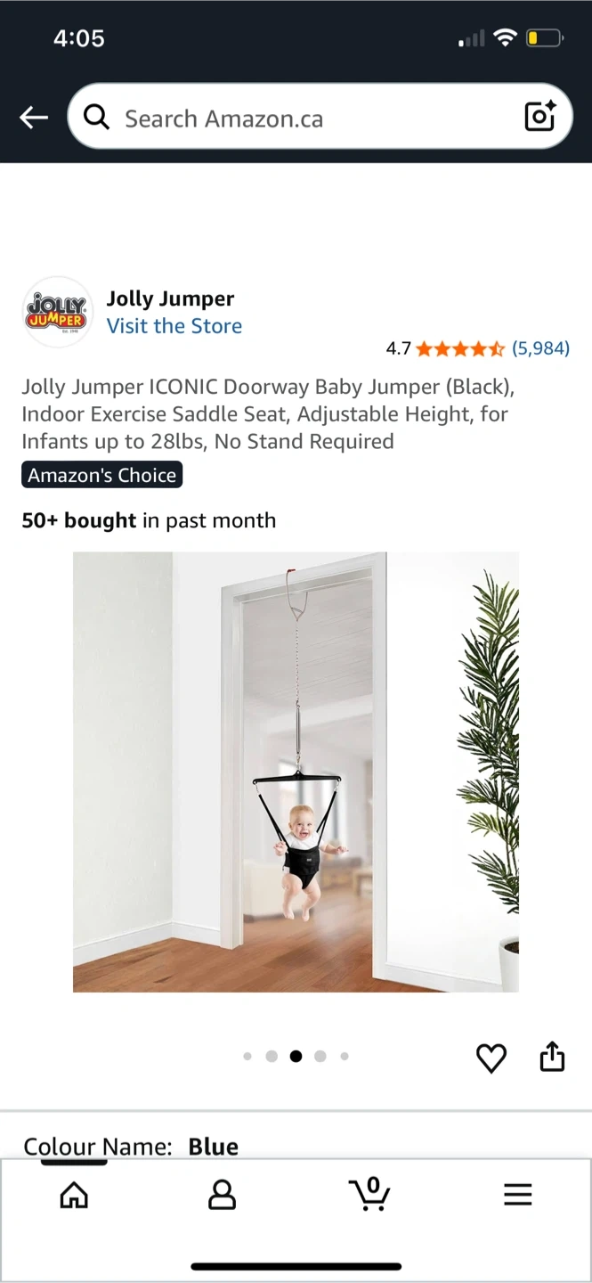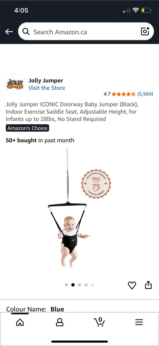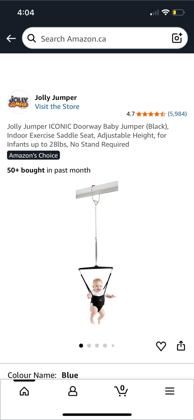 This Jolly Jumper ICONIC is a doorway baby jumper designed for indoor exercise. It features a saddle seat and is adjustable in height. It's suitable for infants up to 28lbs and requires no stand. Made in Canada!