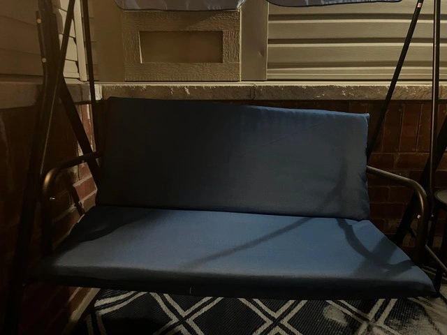 Moving sale! Everything must go. Blue 2-seat swing, in good condition. Located in Bowmanville. Cash only.