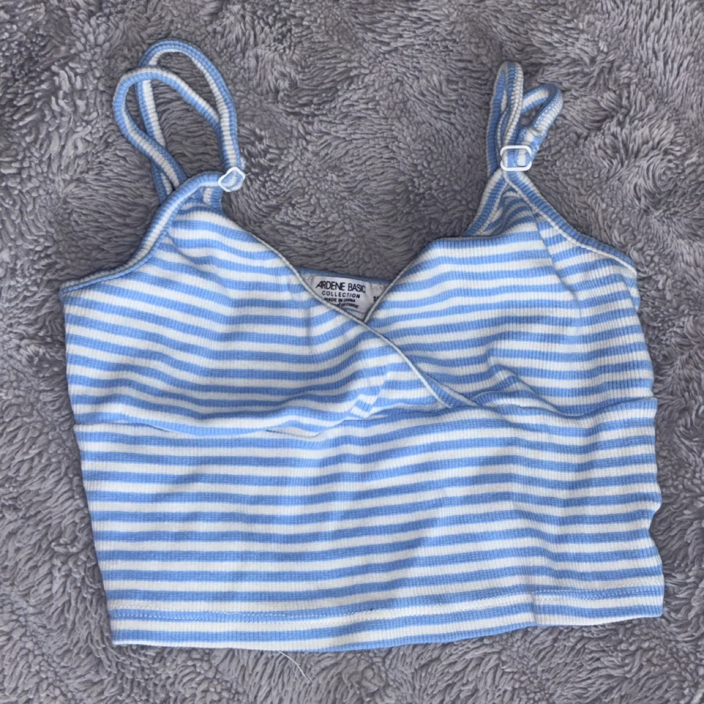 Blue + white cropped tank top with adjustable straps. Size small.