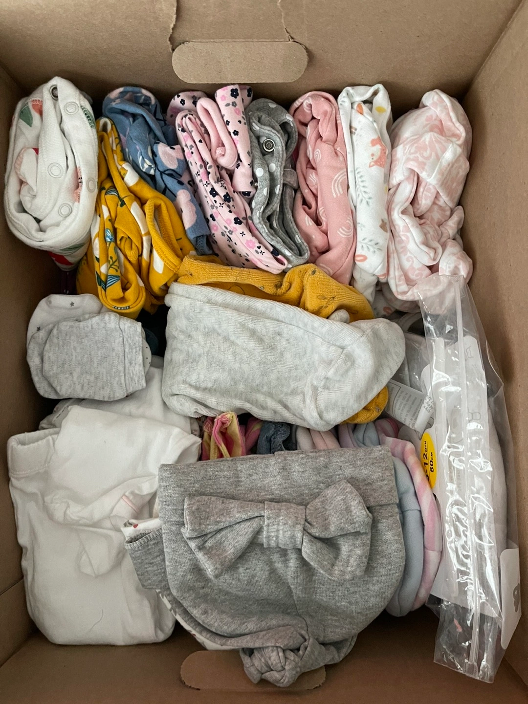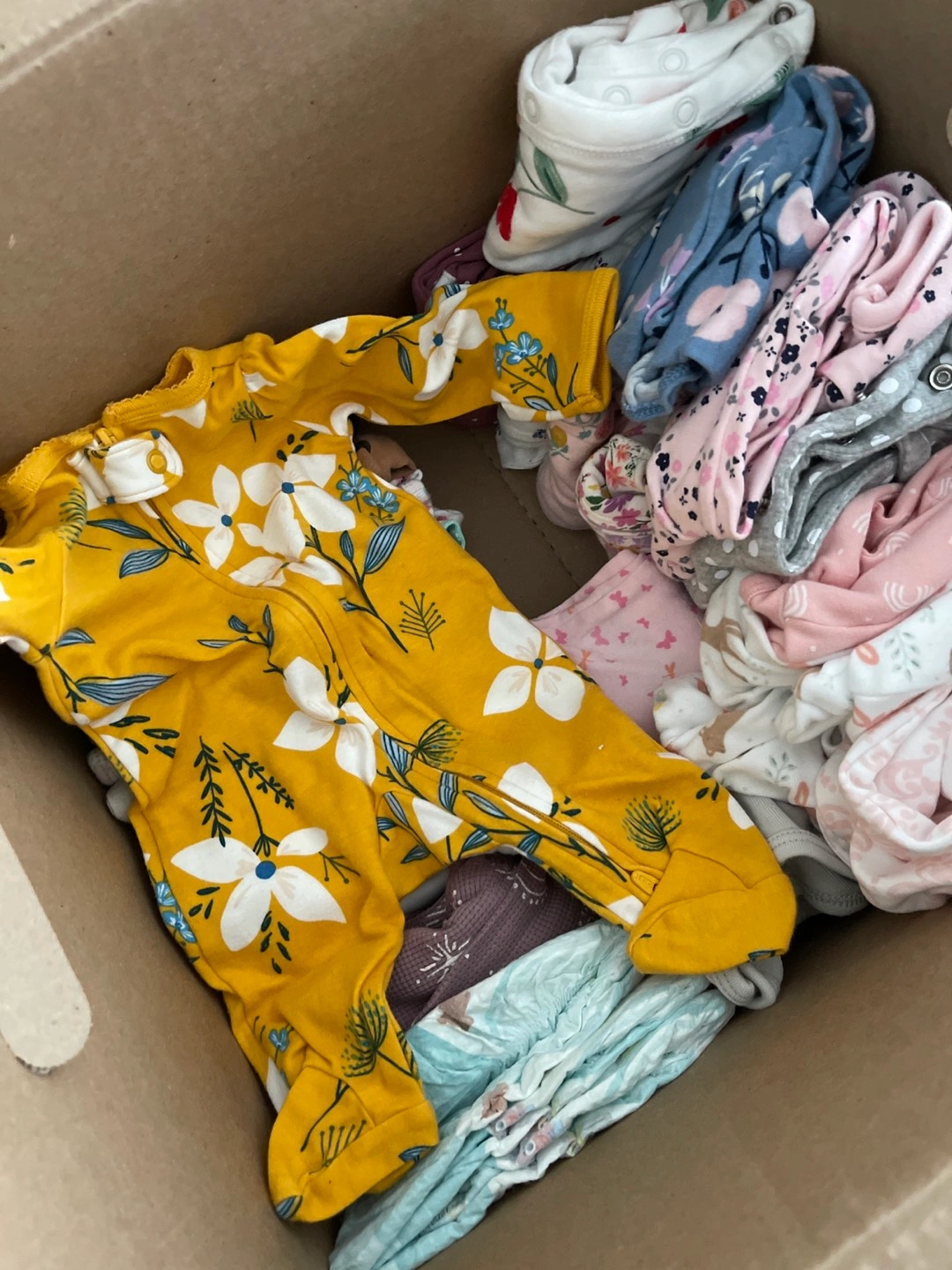 The box contains more than 30 pieces of clothes, 0- 3 months.