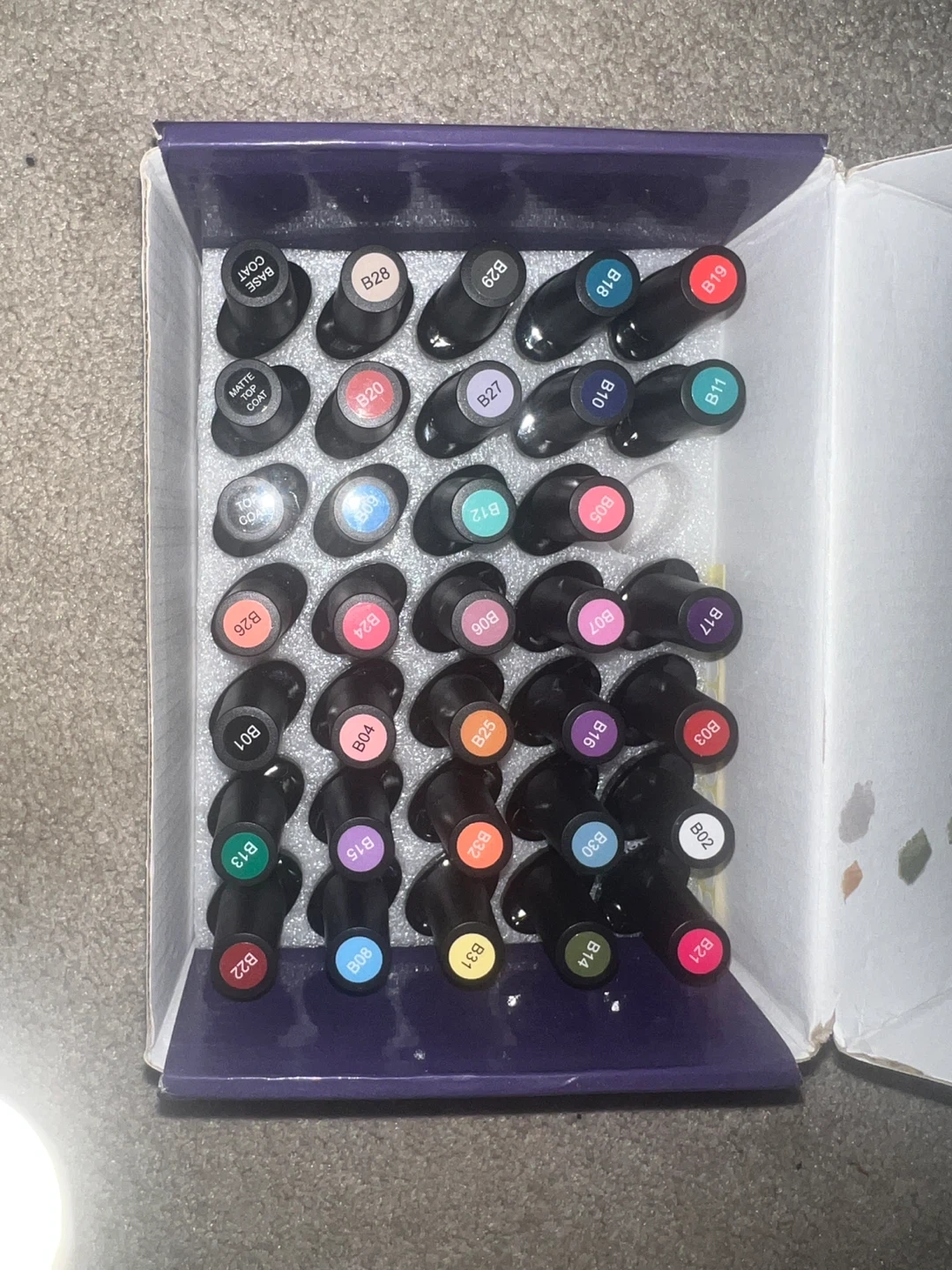 This is a Dawn mini UV/LED nail lamp. It comes with a set of gel polishes, including base coat and matte top coat. Perfect for at-home manicures!