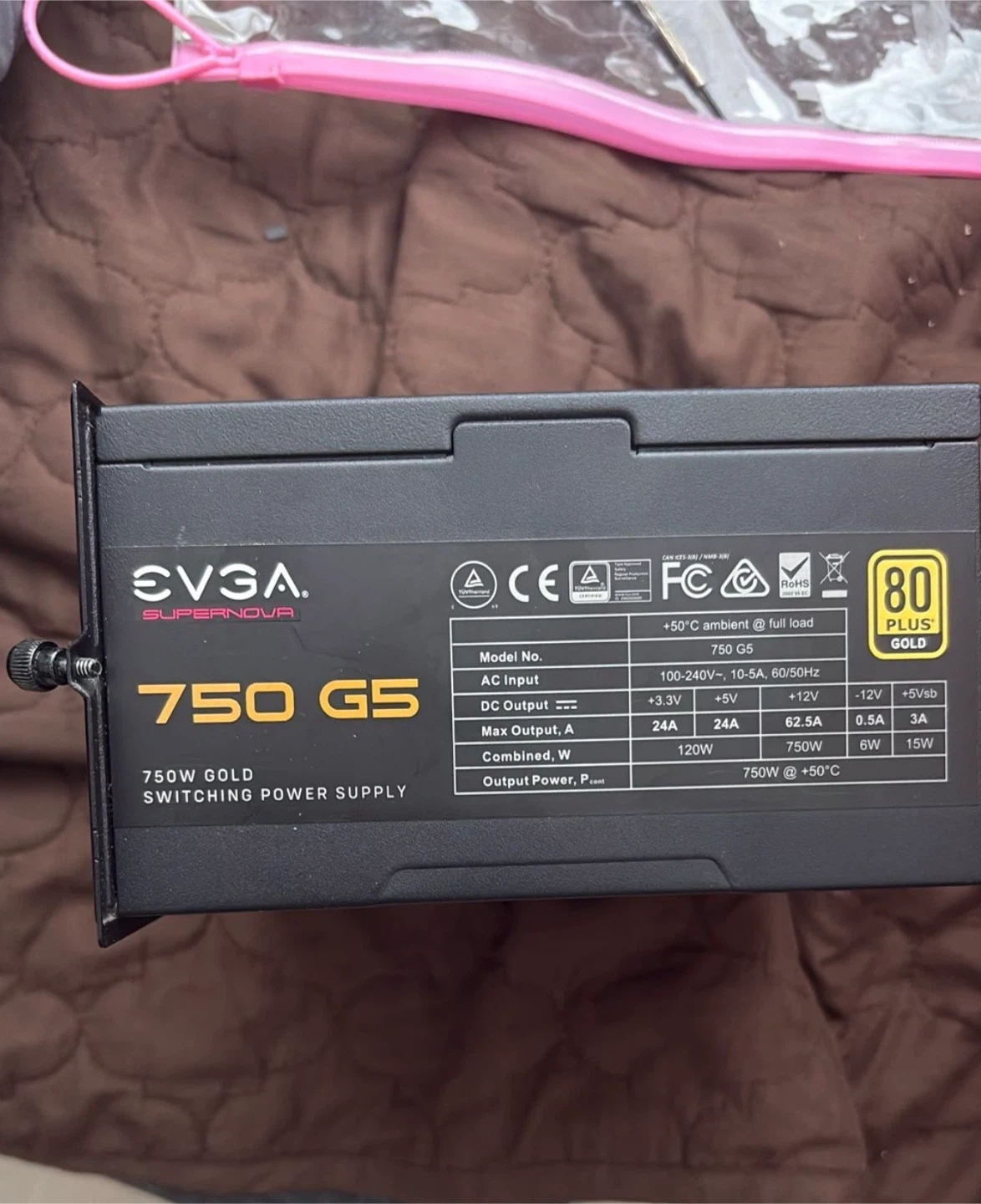 Selling an EVGA Supernova 750 G5 750W Gold Switching Power Supply. This unit is designed to operate at +50°C ambient at full load. It provides 750W of combined power.