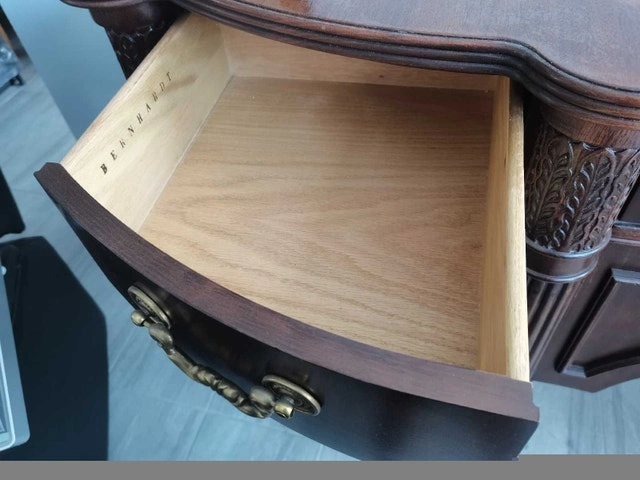 Spruce up your dining area with this elegant Bernhardt sideboard, featuring ample storage with its drawers and cabinets. This used piece measures 74"x23"x40", perfect for adding a touch of sophistication to any room while providing practical utility.