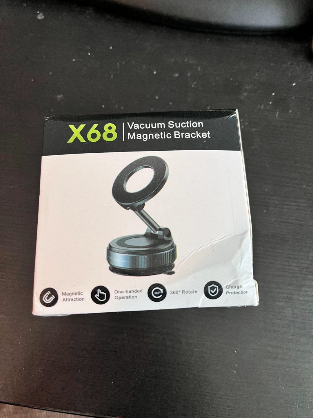This is the X68 vacuum suction magnetic bracket for phones. It offers magnetic attraction and 360-degree rotation. Adhesion can be restored after cleaning. This bracket is great for easy, one-handed operation in your car.