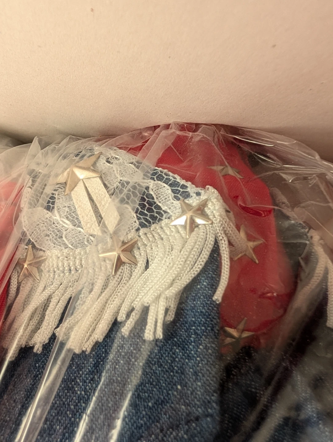 Dakota comes dressed in a cowgirl dress outfit with a red cowboy hat and sits on a rocking horse.