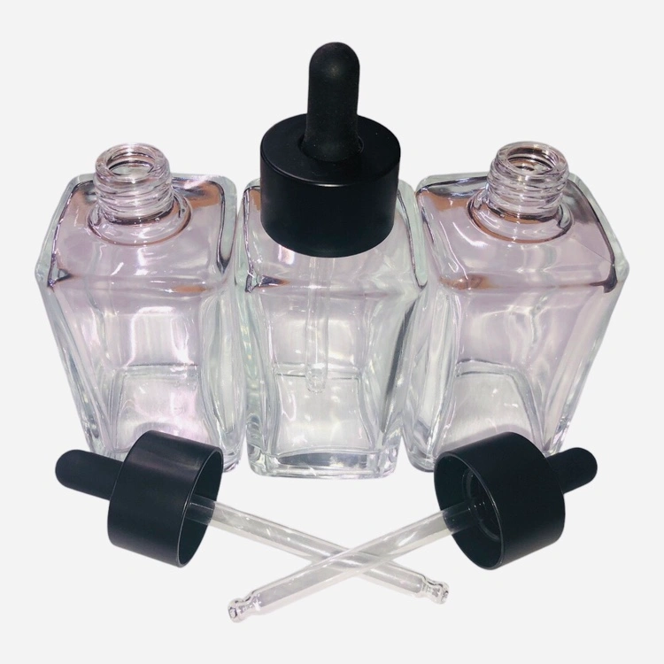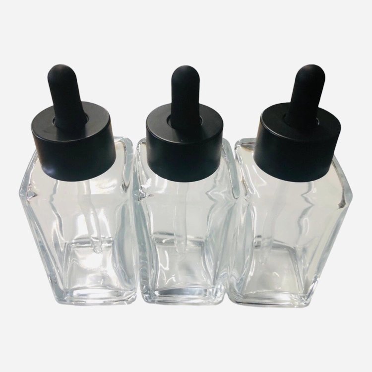 -Glass dropper bottles. They are square shaped and come with black droppers. Perfect for storing essential oils or other liquids.
