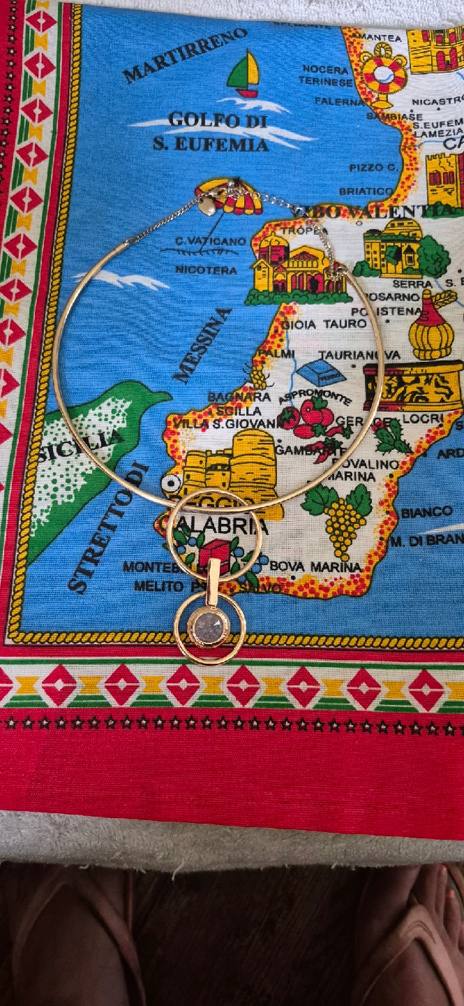 stylish gold-tone statement necklace. It features a choker-style design with circular elements and a pendant. Perfect for adding a chic touch to any outfit!