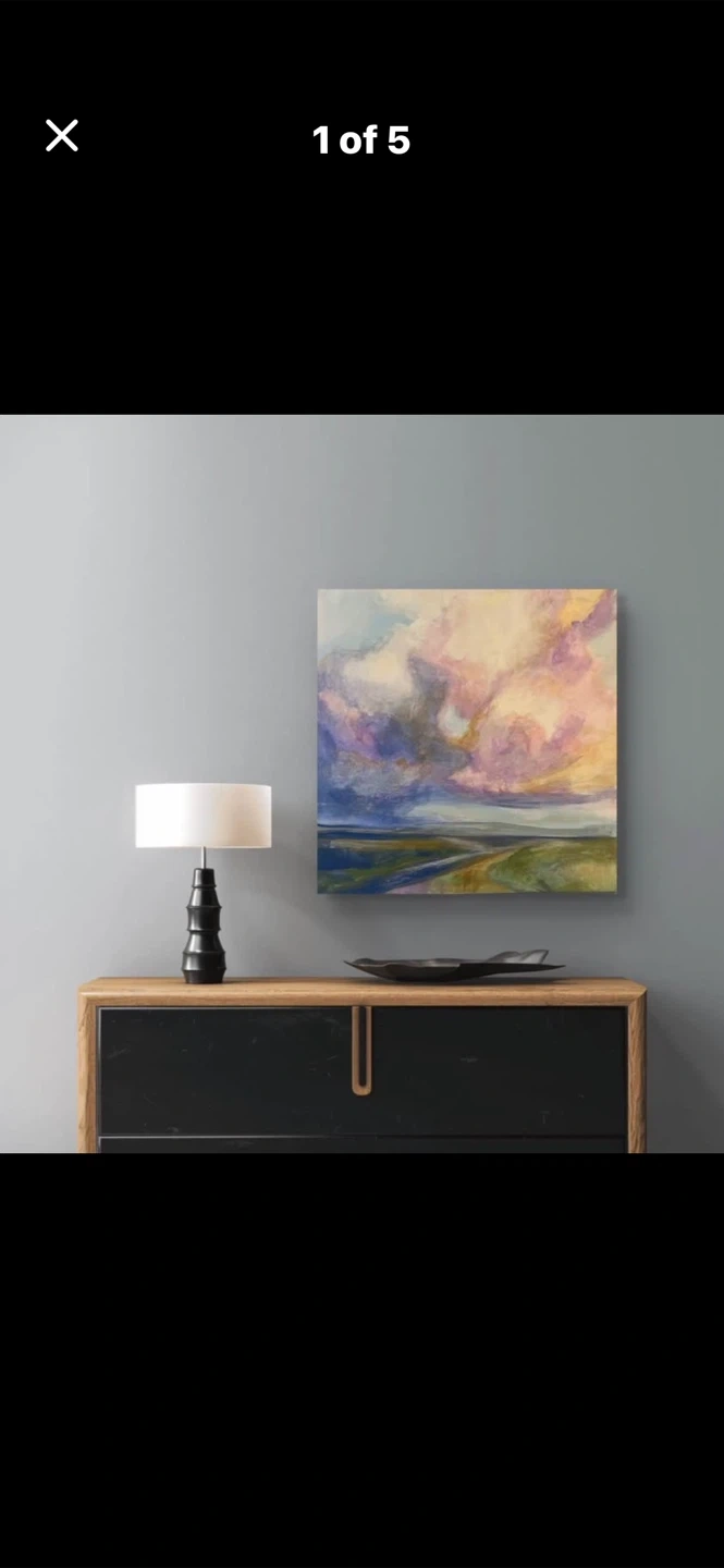 Vibrant abstract landscape painting. This canvas art features a colourful sky over rolling hills. It's a beautiful piece for any room! Real painting not a print