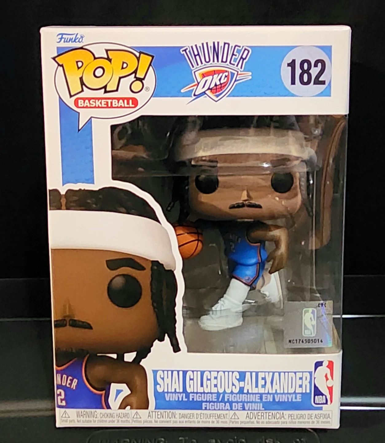 Funko Pop! Vinyl figure of Shai Gilgeous-Alexander, number 182. Features the Oklahoma City Thunder player in his basketball uniform. Comes in original packaging.