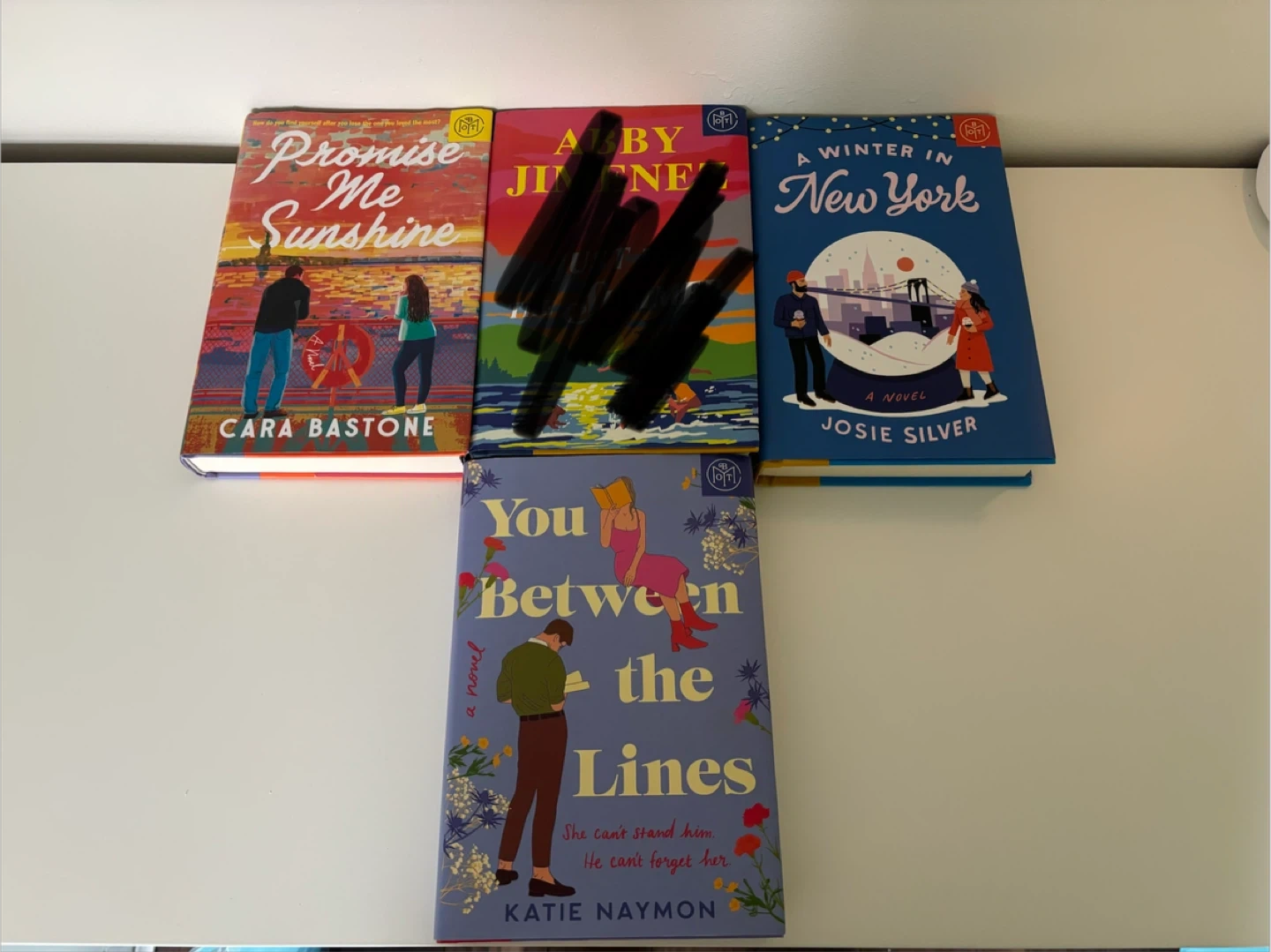 Includes 'The Spanish Love Deception' by Elena Armas, 'Yours Truly' by Abby Jimenez, 'Meet Me at the Lake' by Carley Fortune, 'Book Lovers' by Emily Henry, and 'A Winter in New York' by Josie Silver. $5 each